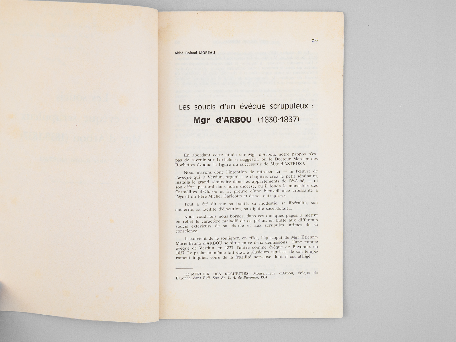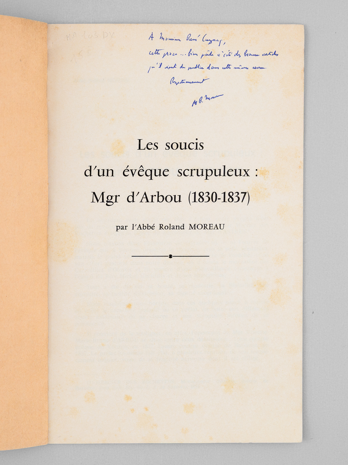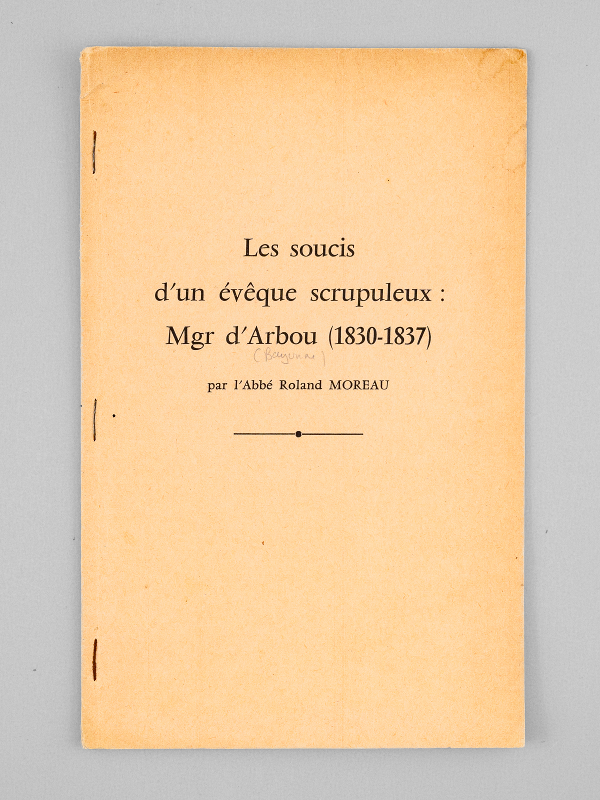 Les soucis d'un évêque scrupuleux : Mgr. d'Arbou (1830-1837) [ exemplaire dédicacé par l'auteur ]