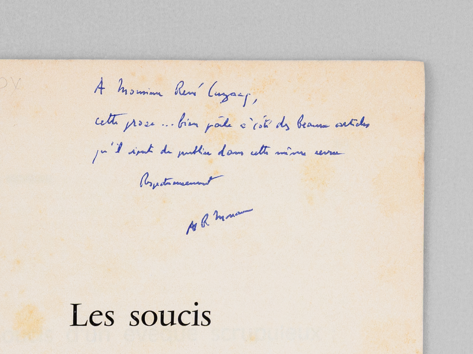 Commentaire : Bon état pour ce tiré à part consacré à Etienne Marie Bruno d'Arbou (1778-1858), évêque de Bayonne de 1830 à 1837, qui fonda le Carmel de Bayonne en 1833. Avec un bel envoi à René Cuzacq : 'A Monsieur René Cuzacq, cette prose... bien pâle à côté des beaux articles qu'il vient de publier dans cette même revue. Respectueusement.'. Le dédicataire était l'historien et géographe René Cusacq (1901-1977), grand spécialiste des Landes et du Pays Basque.