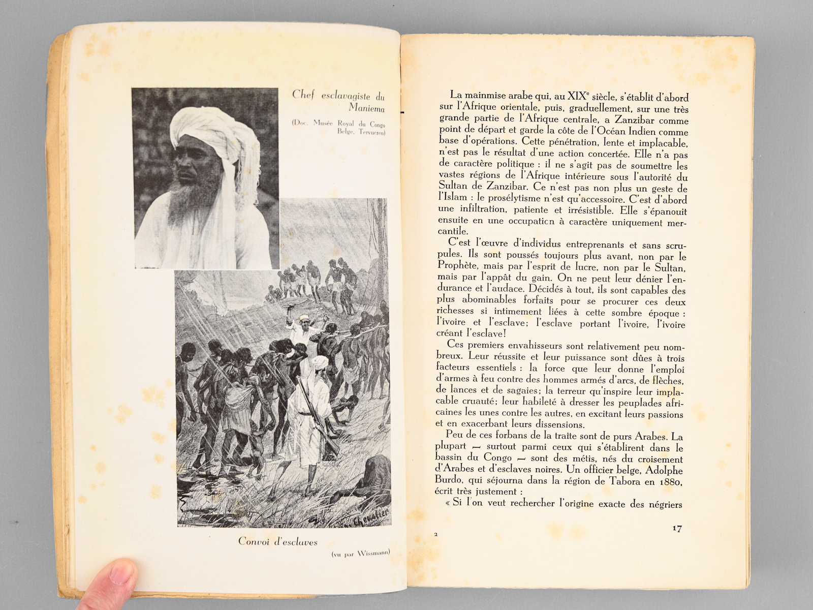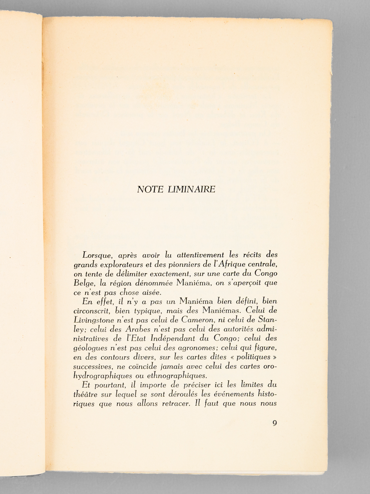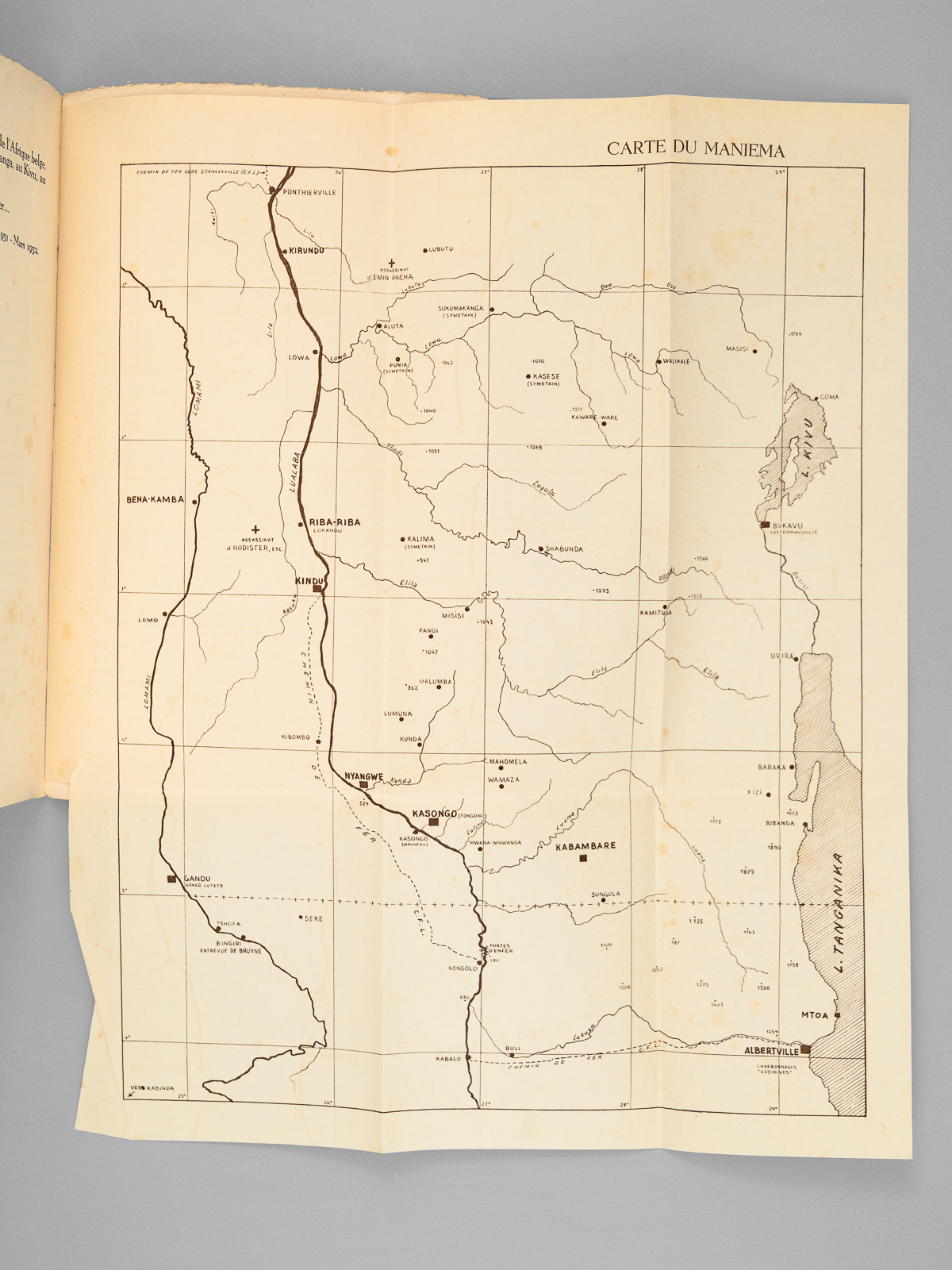 1 vol. in-8 br., Editions L. Cuypers, Bruxelles, 1952, 347 pp. avec carte dépliante et illustrations hors texte Commentaire : Ouvrage passionnant et peu commun, évoquant l'histoire de l'exploration et de la colonisation du 'Maniema', qui désignait généralement au XIXe siècle la région actuellement connue sous le nom de « Kivu » (actuelles provinces du Nord Kivu, Sud Kivu et Maniema). Le Maniema est actuellement l'une des 26 provinces de la République démocratique du Congo. Etat très satisfaisant (sans la jaquette, couv. lég. frottée, bon état par ailleurs)