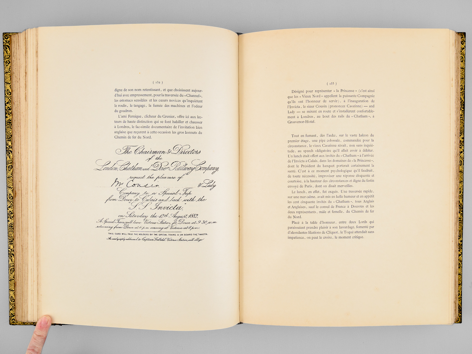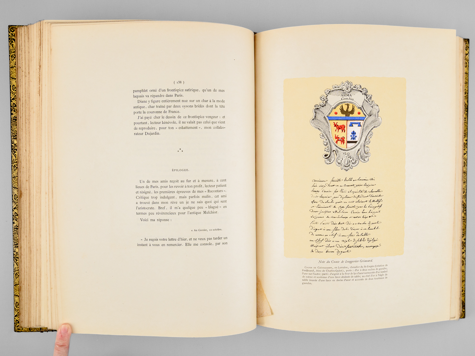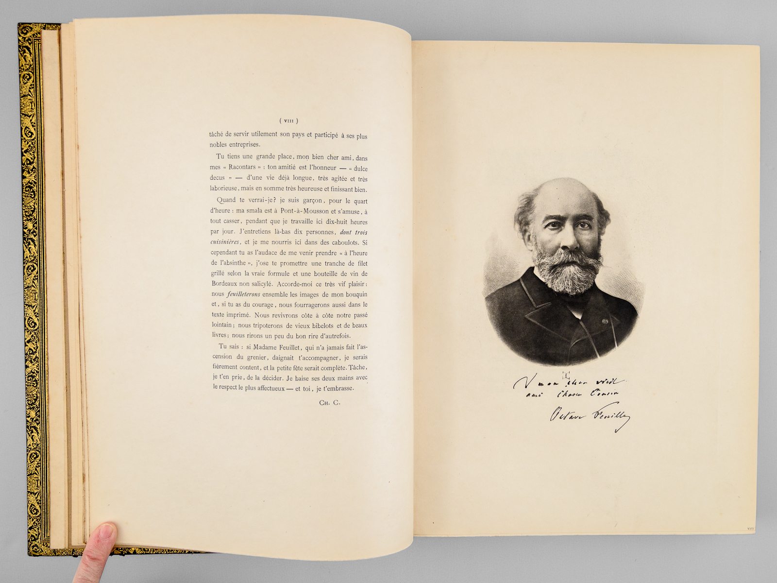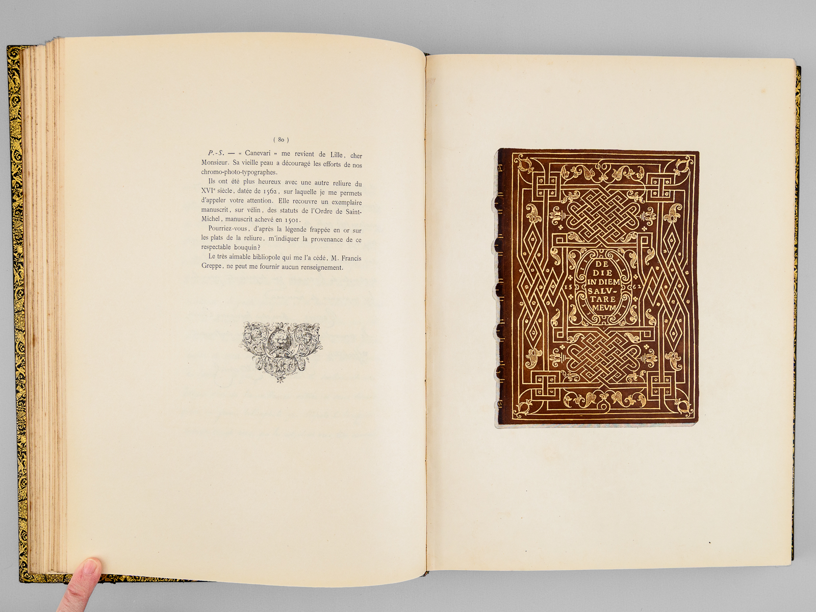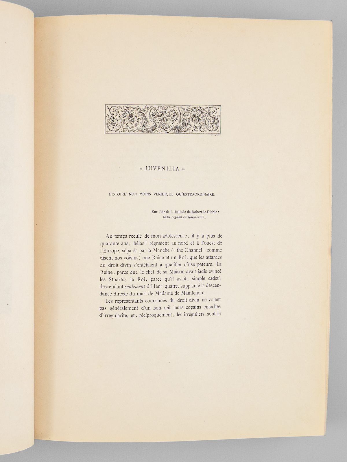 Par l'auteur du « Voyage dans un grenier », Vice-Président de la Société des Amis des Livres, un des 500 exemplaires en un volume sur papier impérial du Japon (après 150 exemplaires en 2 volumes numérotés) ; 1 vol. grand in-4 reliure plein maroquin bleu, dos à 5 nerfs dorés richement orné, plats orné à la Du Seuil, double filet doré en coupes, chasses richement ornée, reliure signée de Thierry, Succr. de Petit-Simier, À la Librairie de « L'Art », Paris, 1887, XVI-335 pp. Commentaire : Bibliophile, Charles Cousin (1822-1894) fut grand-maître du Grand Orient de France en 1883. Un chapitre entier est consacré à ses frères maçons, et la franc-maçonnerie évoquée à diverses reprises dans l'ouvrage. Bon état pour cet exemplaire établi dans une très belle reliure de Thierry (ex-libris gravé Louis Boutemy, reliure très lég. frottée, reste d'odeur de tabac).