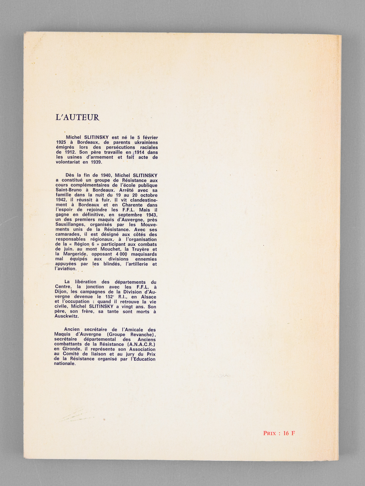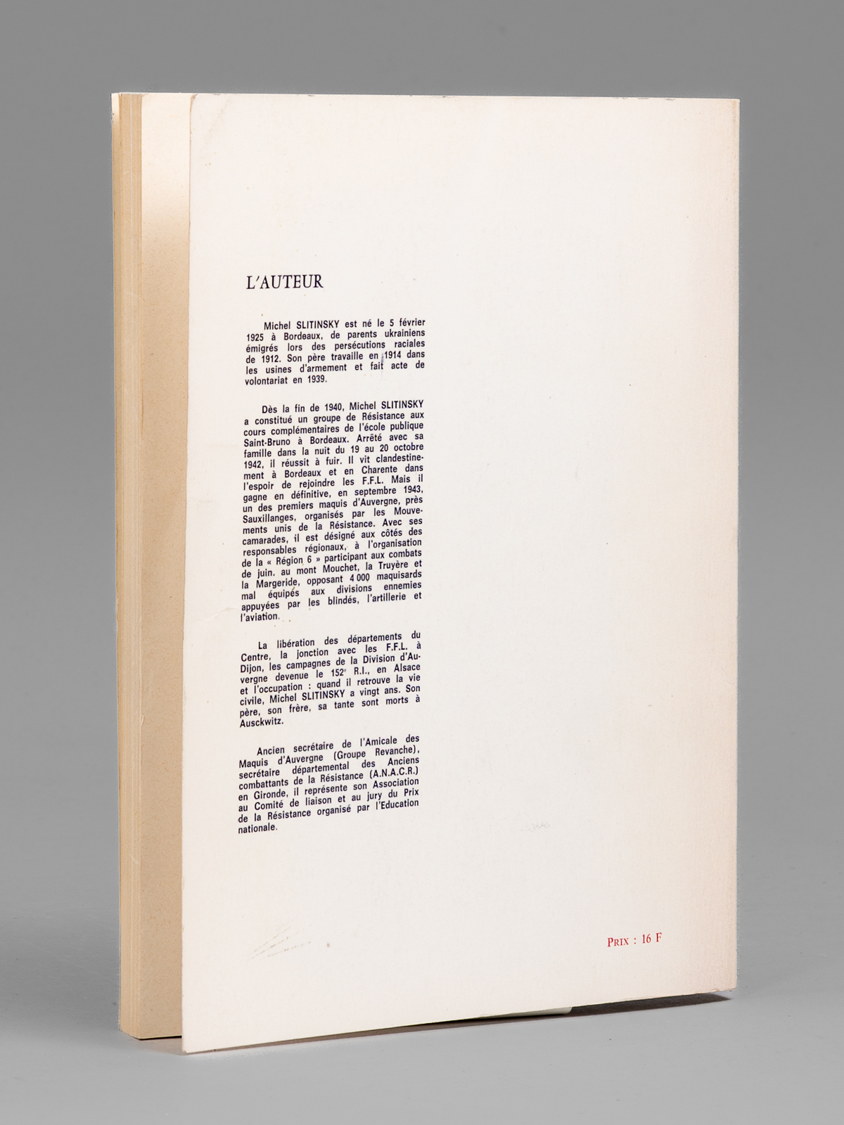 Envoi ms. de l'auteur, 1 vol. in-8 br., Cahiers de la Résistance, Bordeaux, 1968, 237 pp.