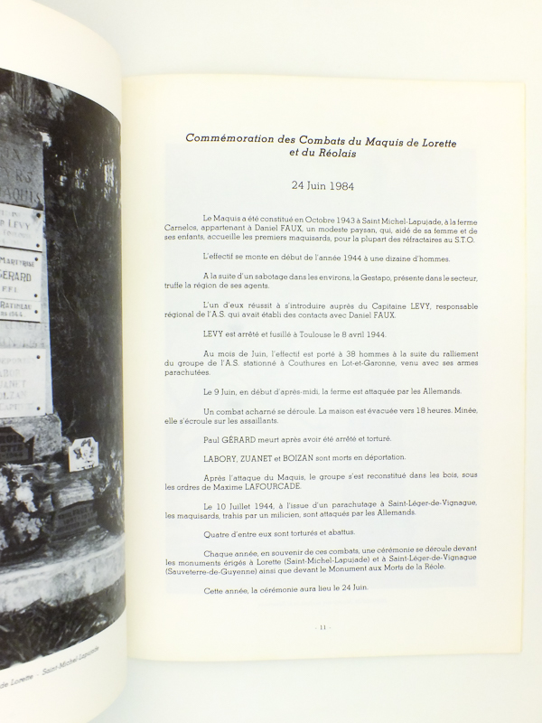 1 vol. in-4 br., ill. noir et blanc, Commission départementale de l'information historique pour la paix Bordeaux, 1984, 23 pp. Commentaire : Bon état pour cette plaquette sur les célébrations commémoratives de la Libération.