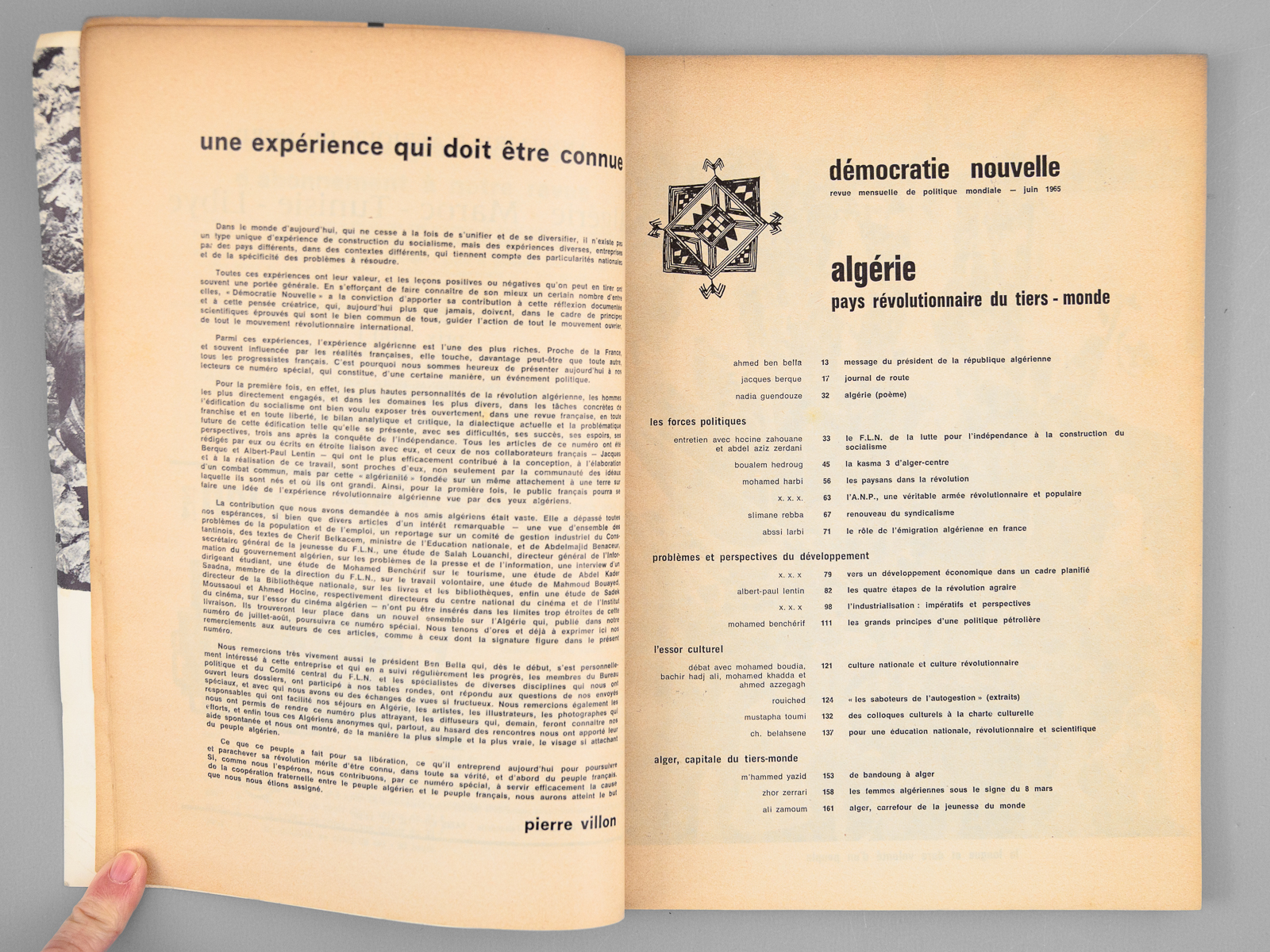 Commentaire : Revue mensuelle créée en 1947 par le Parti communiste français, 'Démocratie nouvelle' cessera de paraître en 1968 à la suite du Printemps de Prague. Le rédacteur en chef-adjoint Paul Noirot poursuivit à partie des années 60 la collaboration avec le FLN, voyageant en Algérie ou dans la Chine de Mao. Bon exemplaire de ce numéro désormais peu commun.