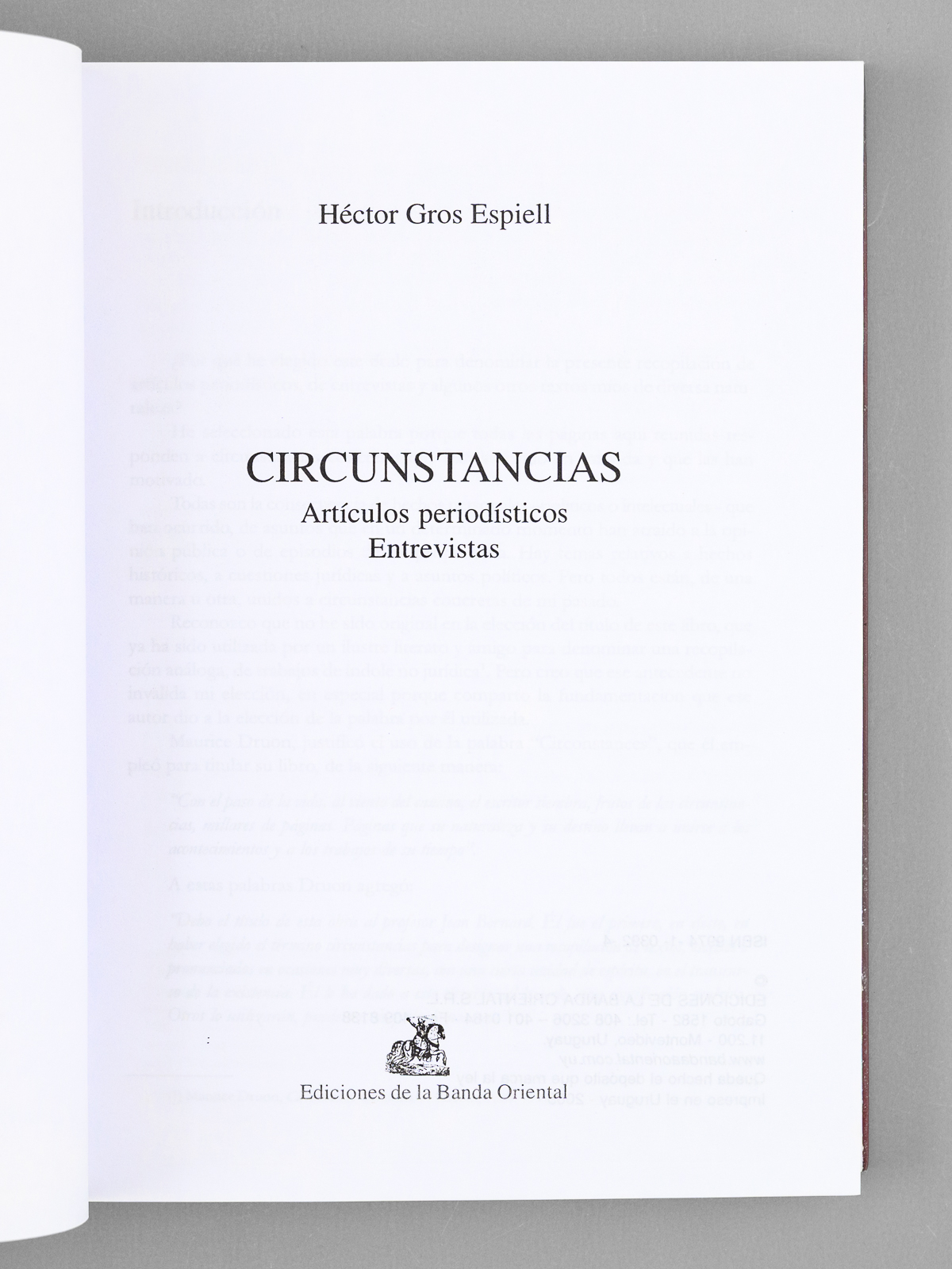 Circunstancias. Articulos periodisticos. Entrevistas [ Livre dédicacé par l'auteur à Maurice Druon ]