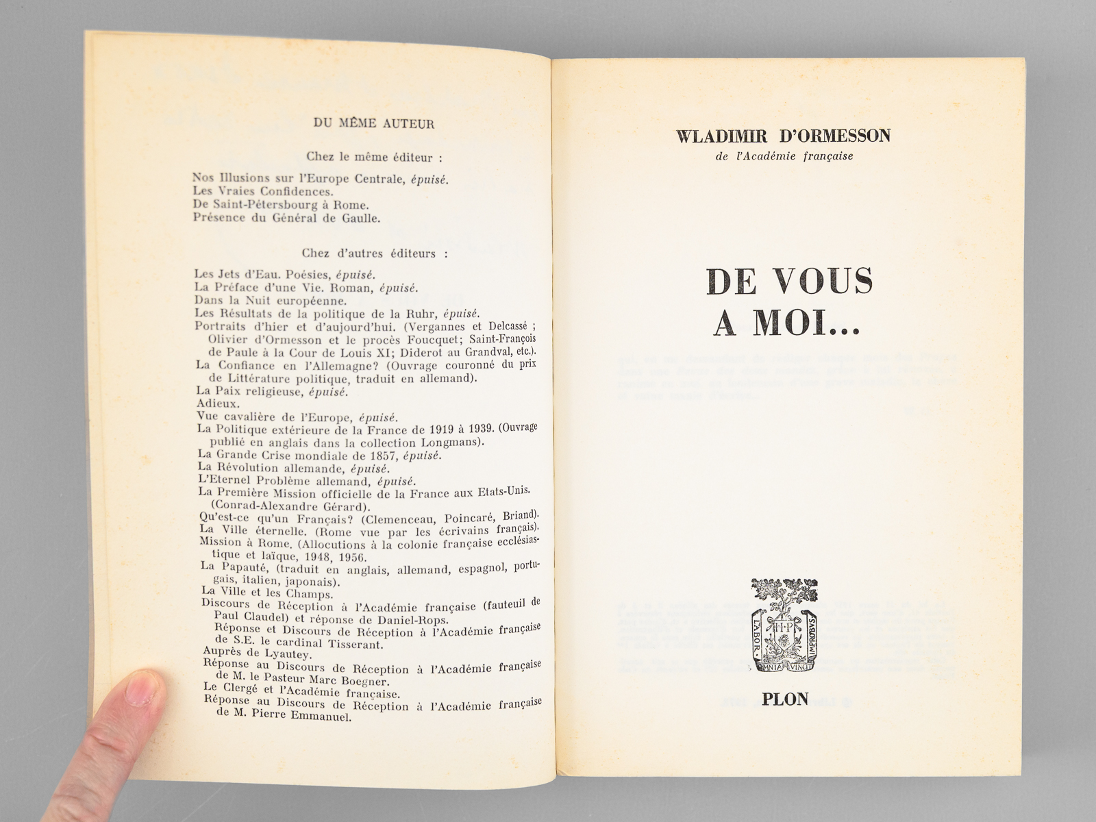 De vous à moi... [ Livre dédicacé par l'auteur à Maurice Druon ]