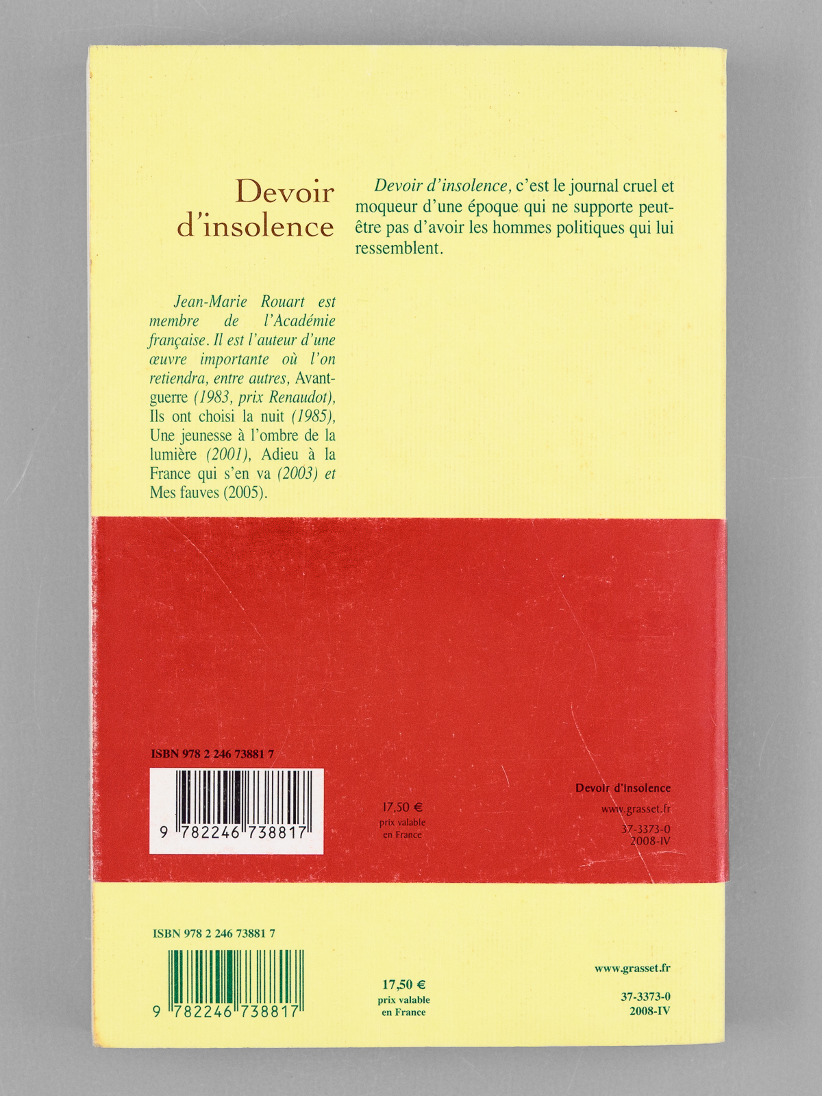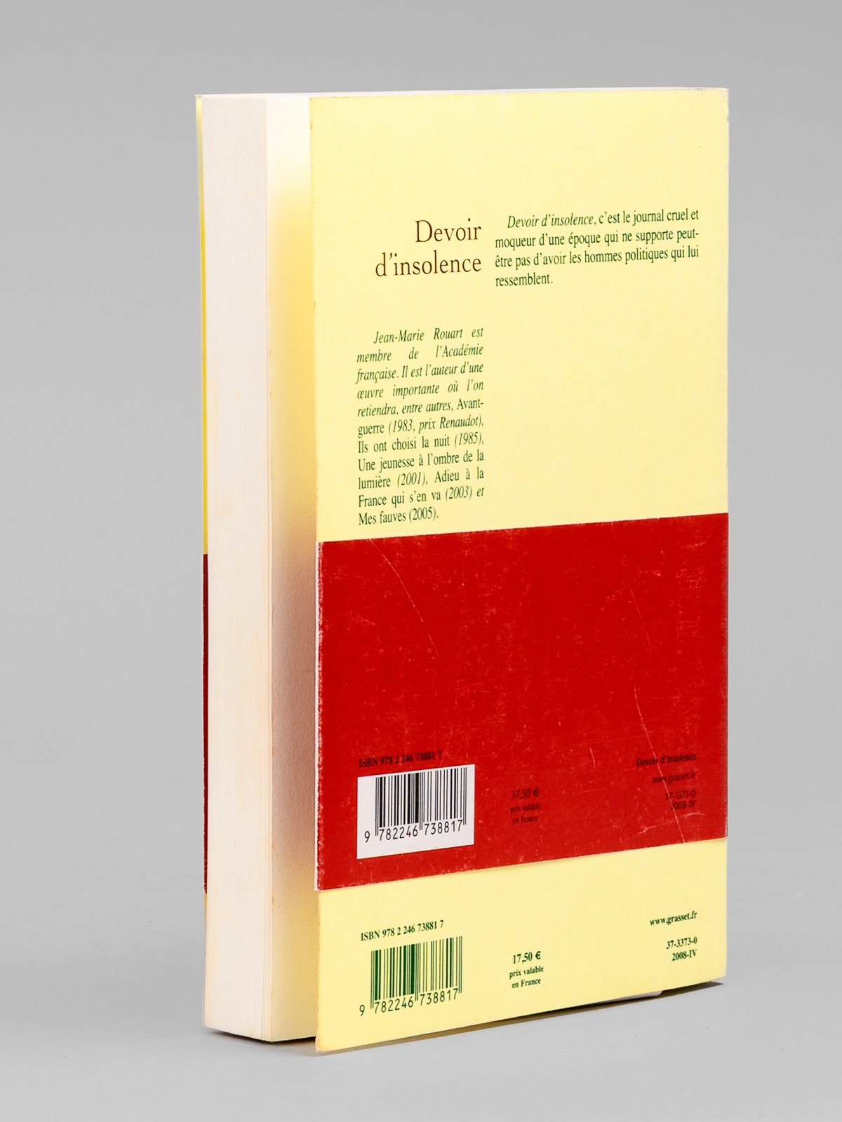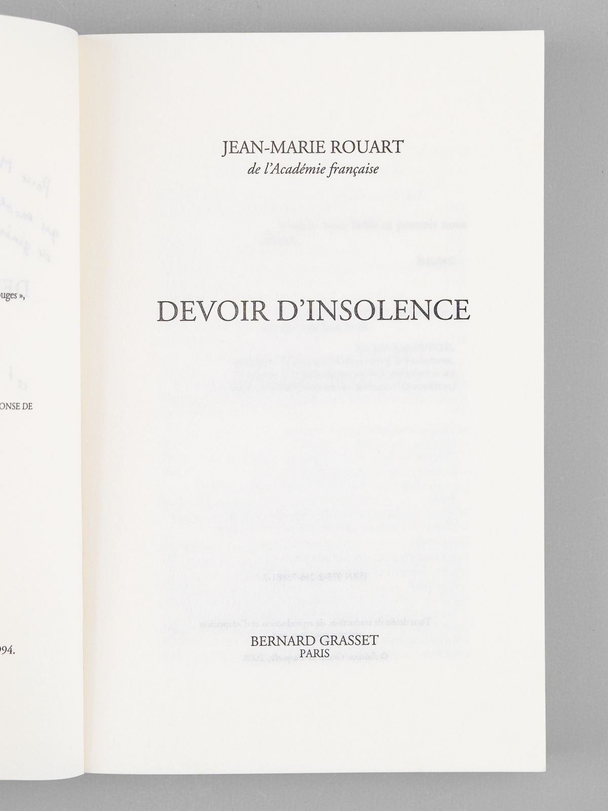 1 vol. in-8 br., Bernard Grasset, Paris, 2008, 264 pp.