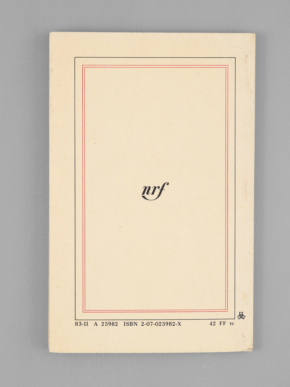 Envoi ms. de l'auteur, 1 vol. petit in-8 br., NRF, Gallimard, Paris, 1983, 63 pp.