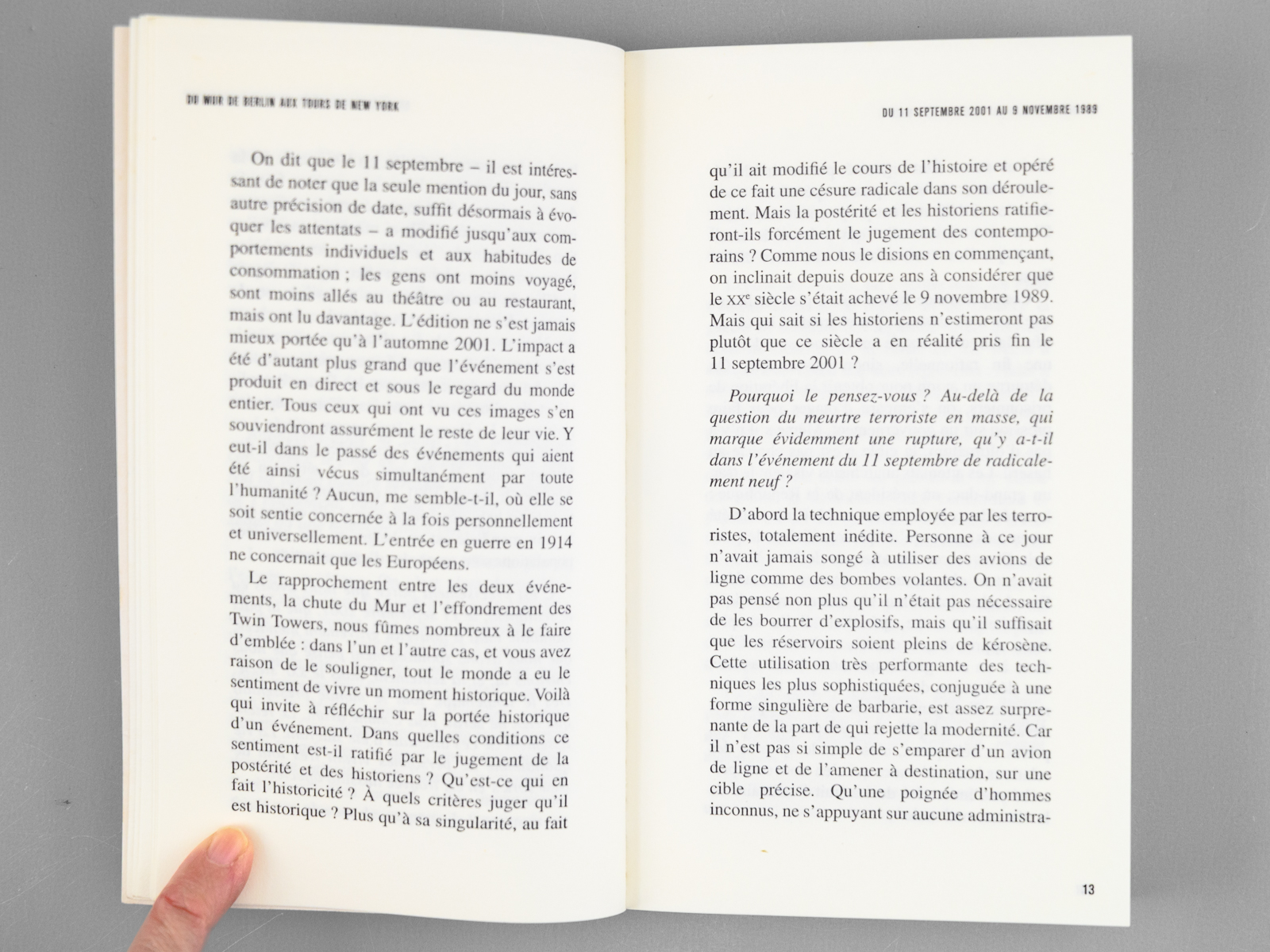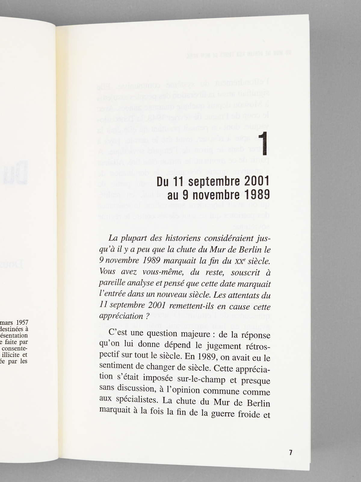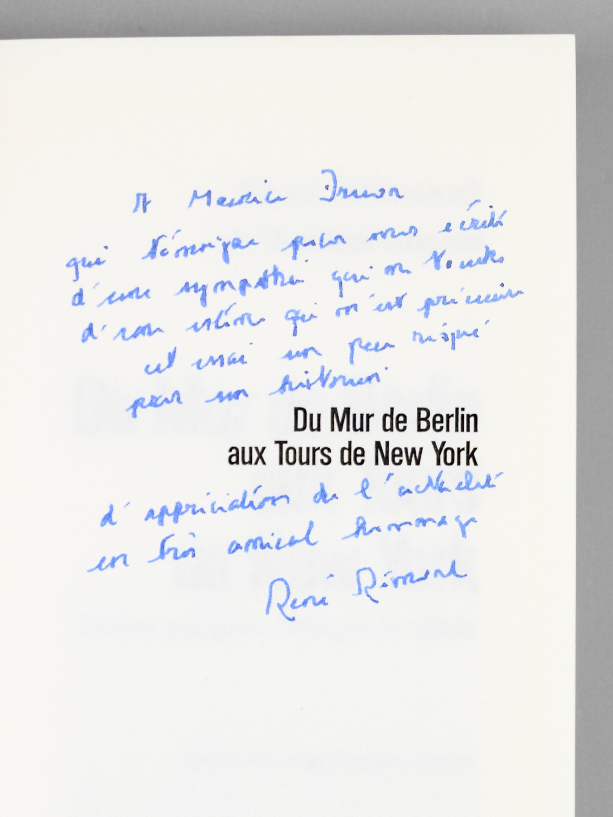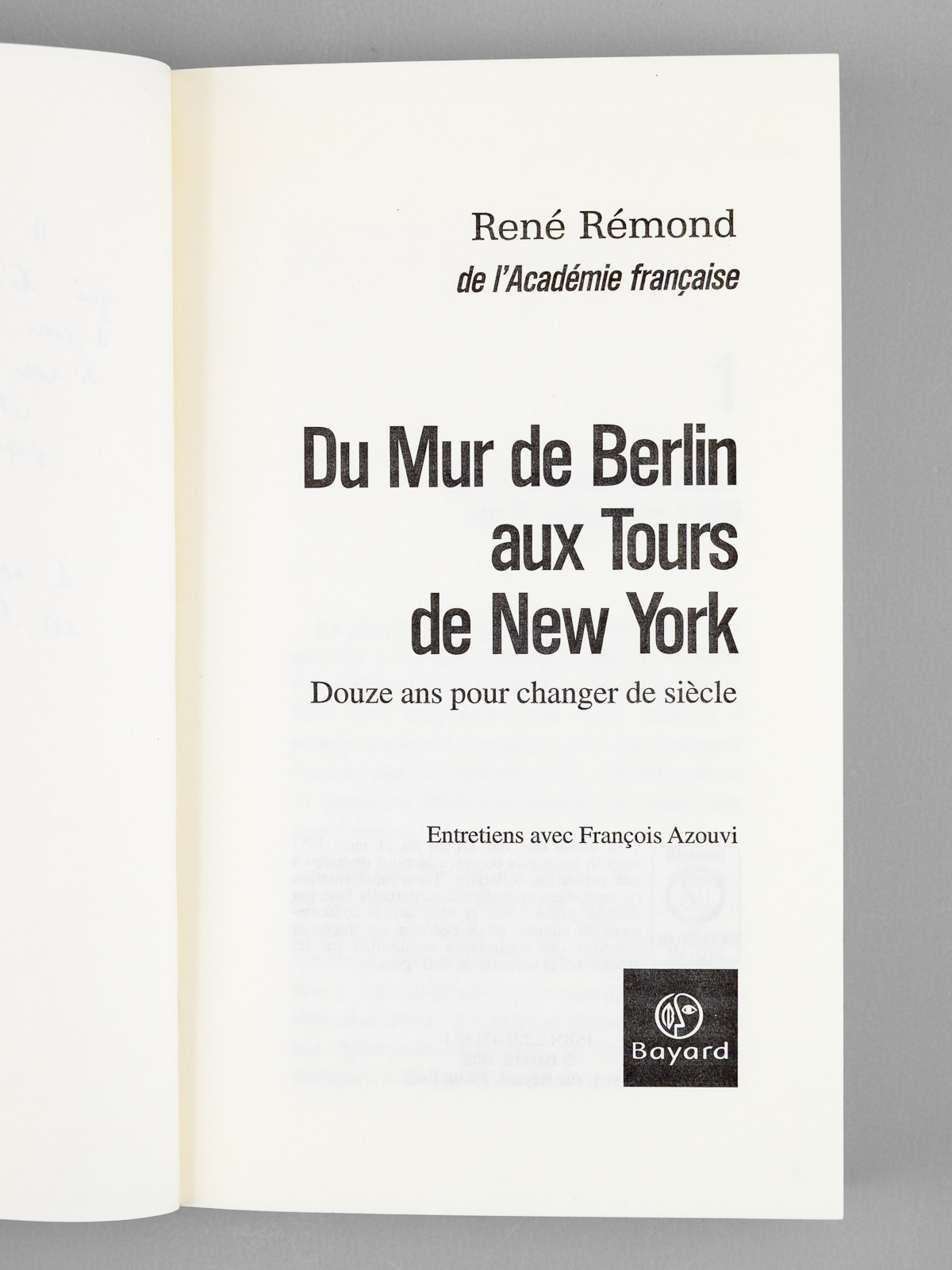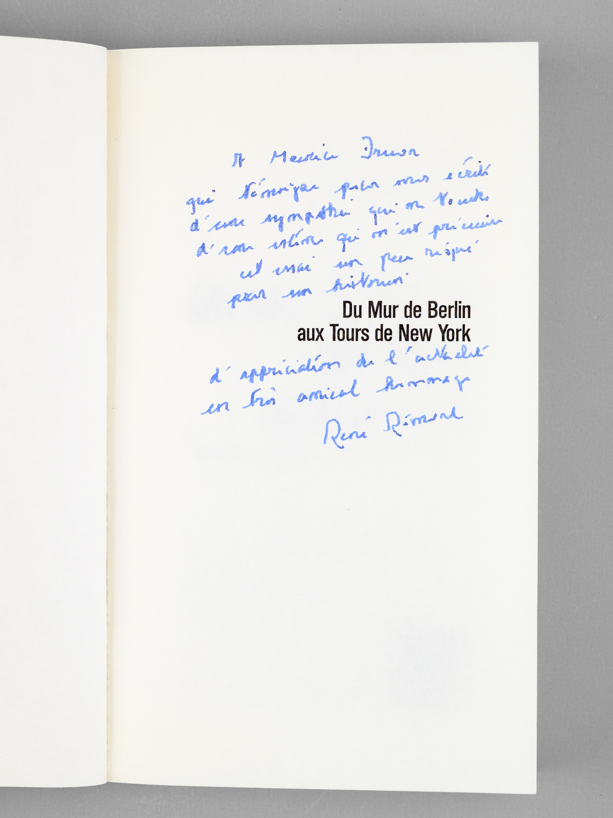 Du Mur de Berlin aux Tours de New York. Douze ans pour changer de siècle [ Livre signé par l'auteur - Envoi à Maurice Druon ] - Auteur: Rémond, René (1918-2007) - Année d'édition: 2002
