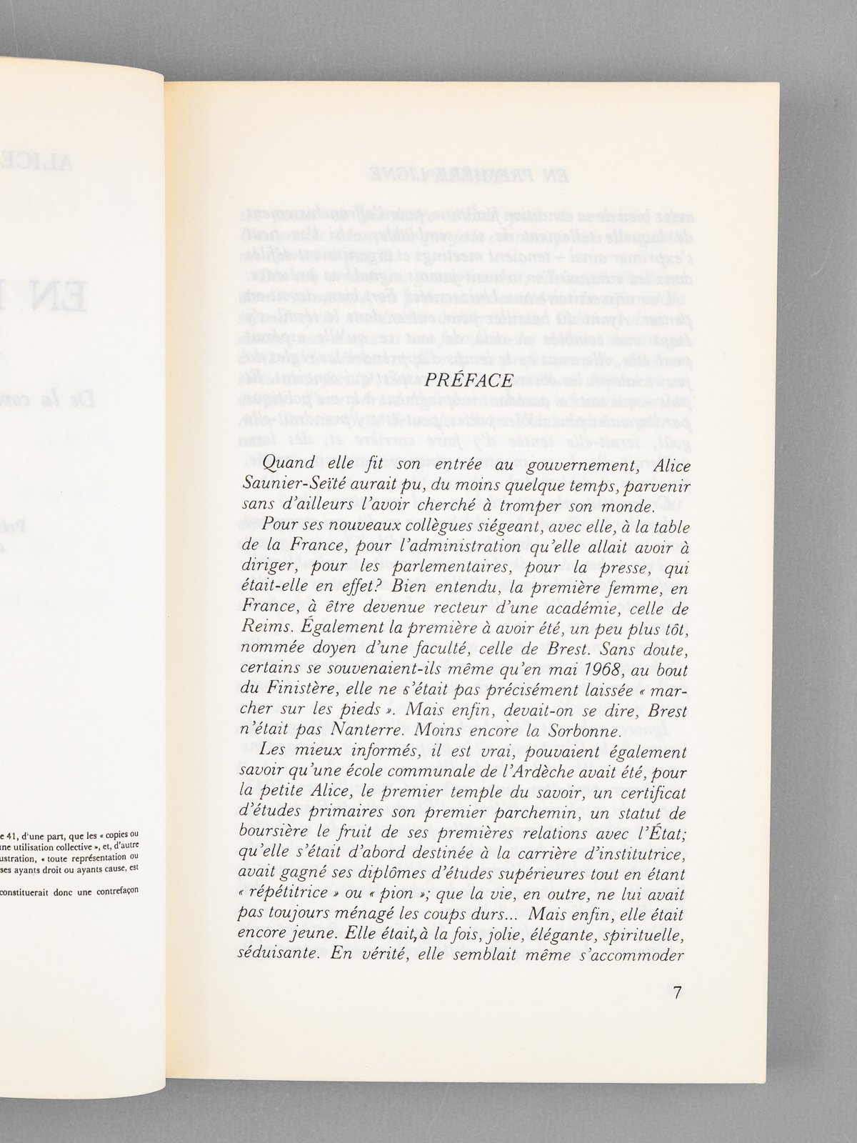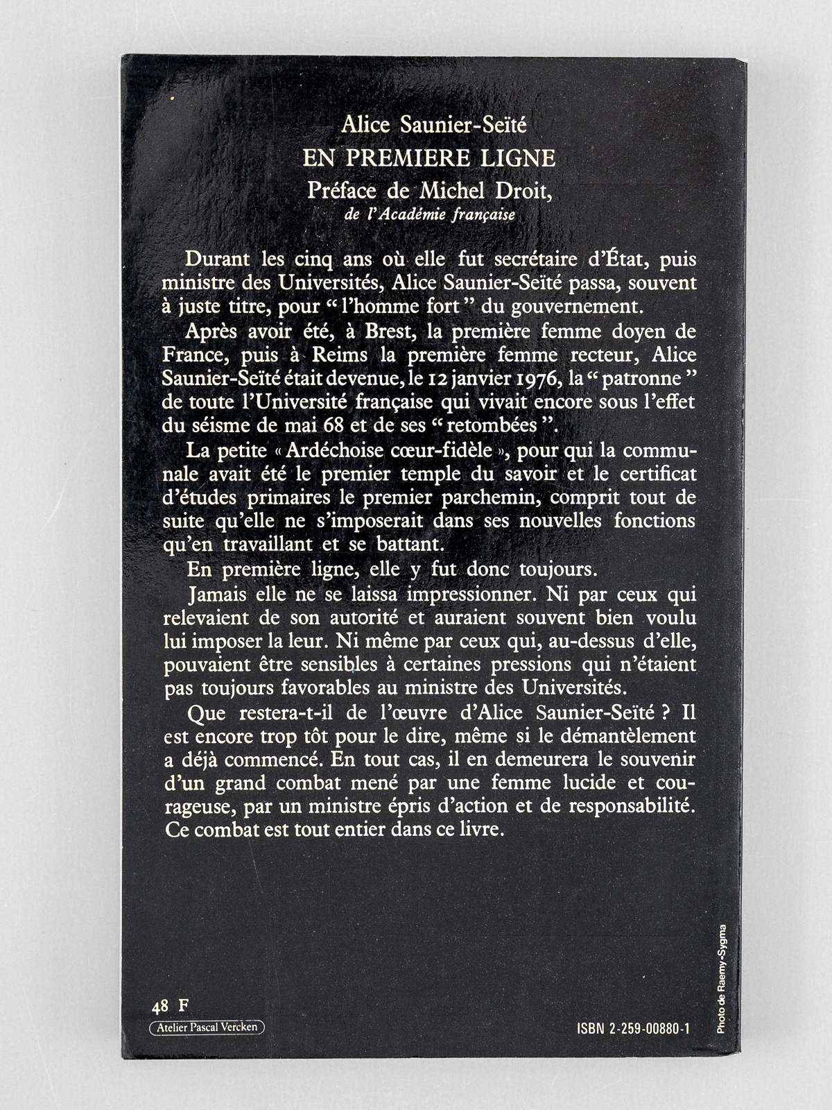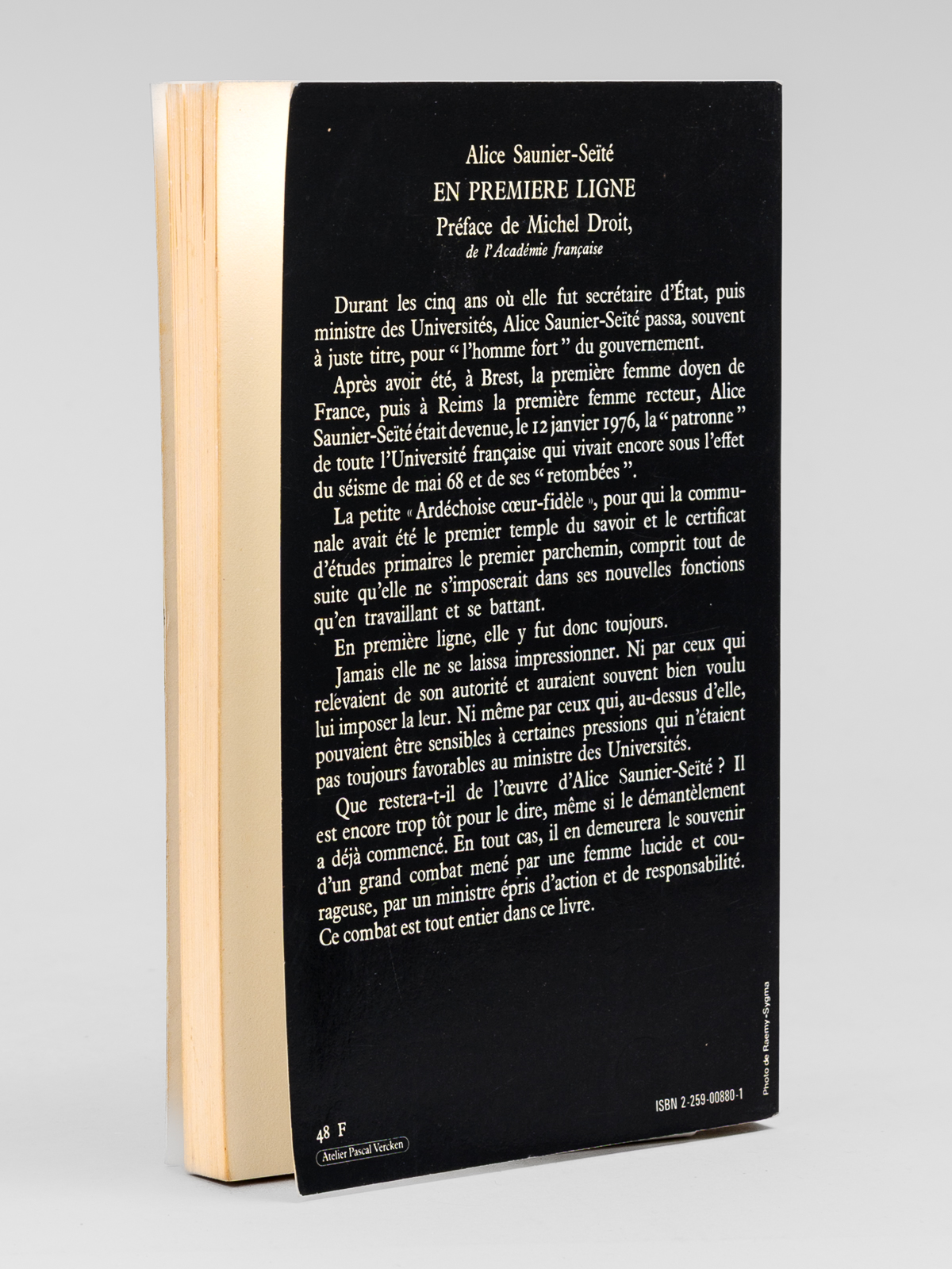 En première ligne. De la communale aux universités [ Livre dédicacé par l'auteur à Maurice Druon ] - Auteur: SAUNIER-SEITE, Alice - Année d'édition: 1982