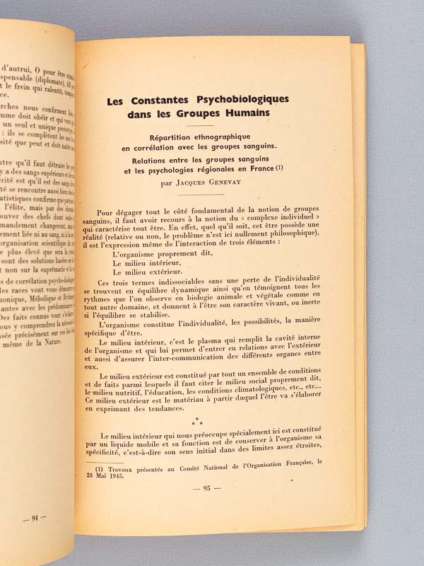 1 vol. in-8 br., CNOF, Comité National de l'Organisation Française, Paris, 1945, 253 pp. Commentaire : L'ouvrage aborde les thèmes principaux suivants : 'Les rapports humains dans le travail' ; 'La fonction sociale de l'entreprise et de la profession' ; 'Psychologie et organisation' ; 'Les Conditions physiques et morales du travail' ; La fatigue et la sécurité dans le travail'. Etat très satisfaisant (dos frotté, cote ms. en garde, cachet d'ex-libris en page de titre, bon état par ailleurs)