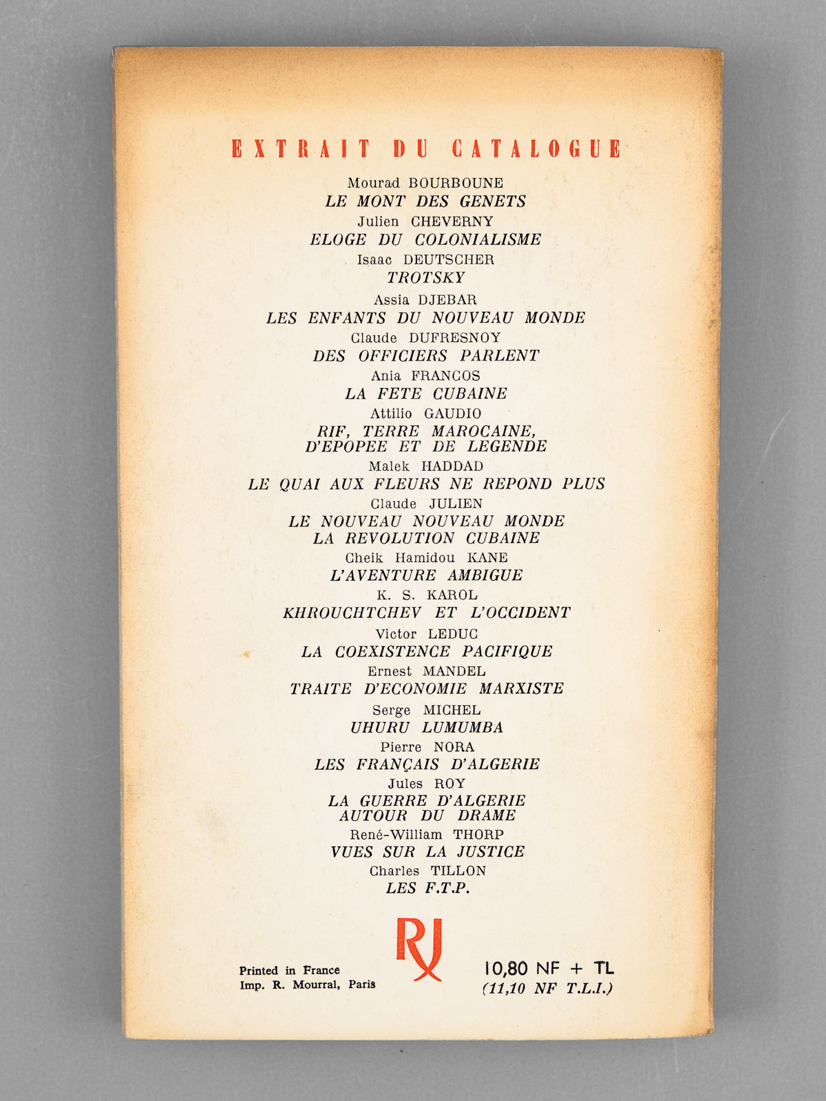1 vol. in-8 br., René Julliard, Paris, 1962, 233 pp.