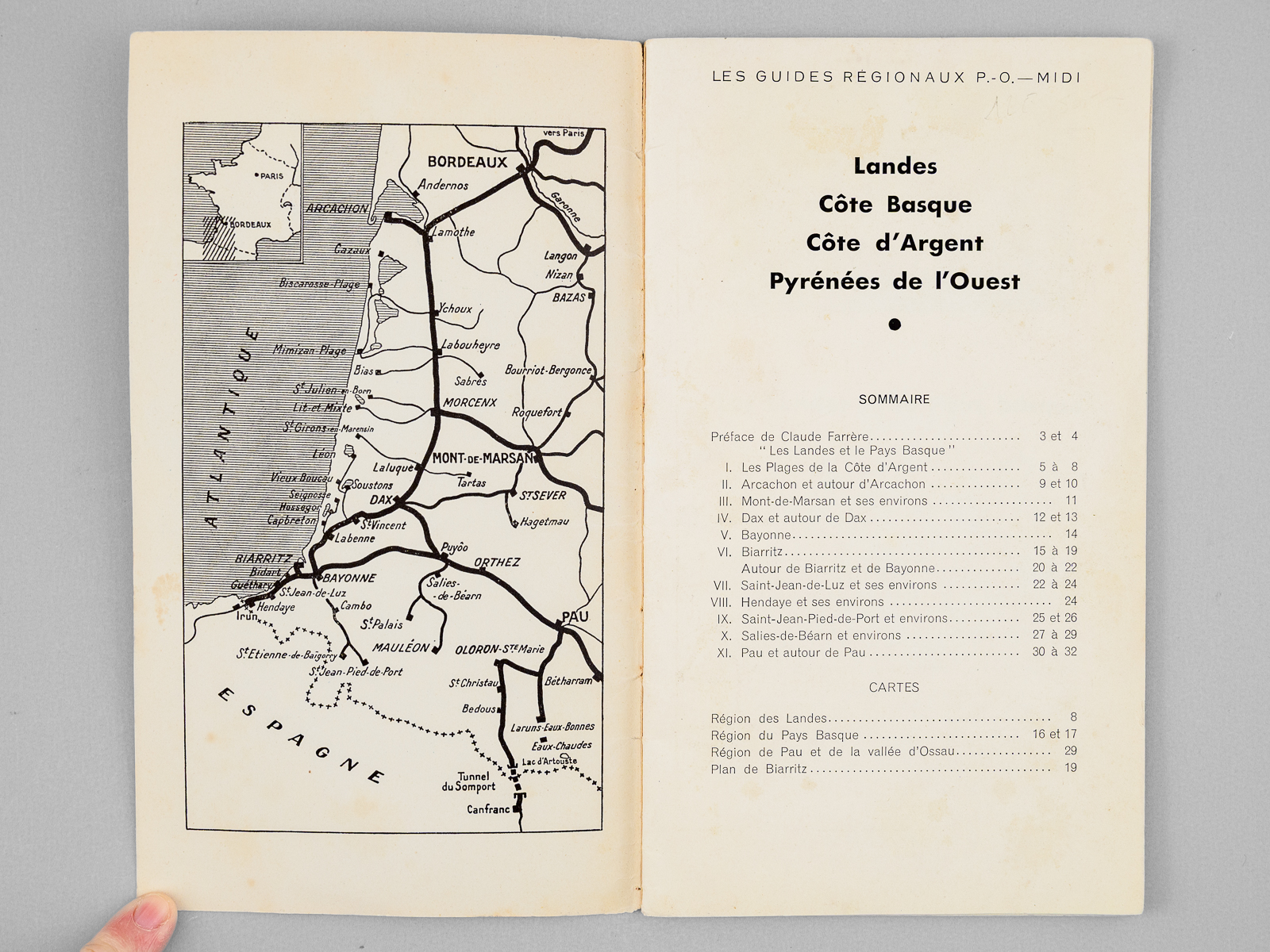 Commentaire : Bon état pour ce guide peu connu. La Compagnie P-O. Midi, issue de la fusion en 1934 de la Compagnie du chemin de fer de Paris à Orléans (P.O.) et de la Compagnie des chemins de fer du Midi et du Canal latéral à la Garonne (Midi), fut a son tour fondue dans la SNCF, dès 1938.