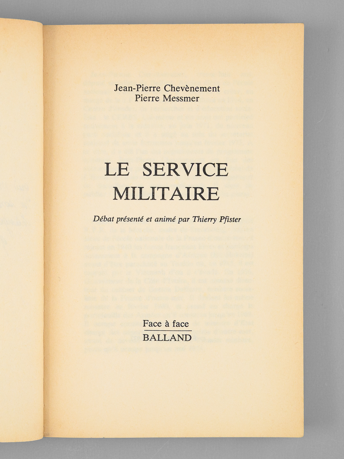 Le Service Militaire. Débat présenté et animé par Thierry Pfister [ Livre dédicacé par l'auteur à Maurice Druon ]