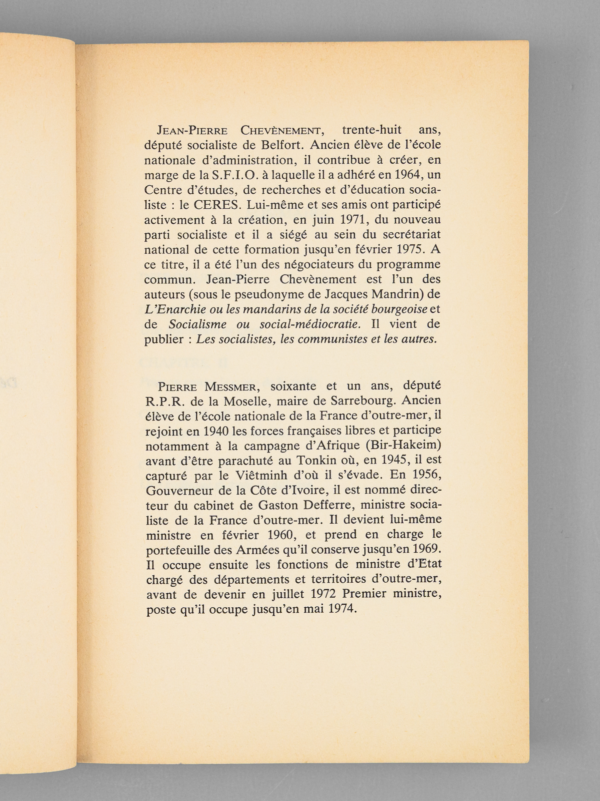- Auteur: MESSMER, Pierre ; CHEVENEMENT, Jean-Pierre
