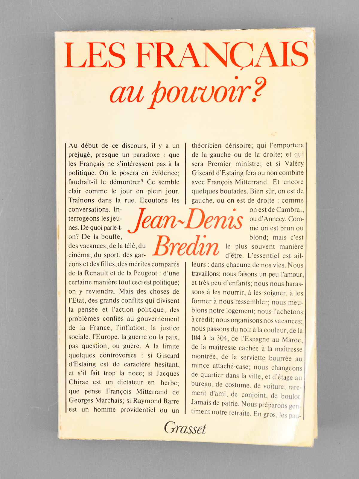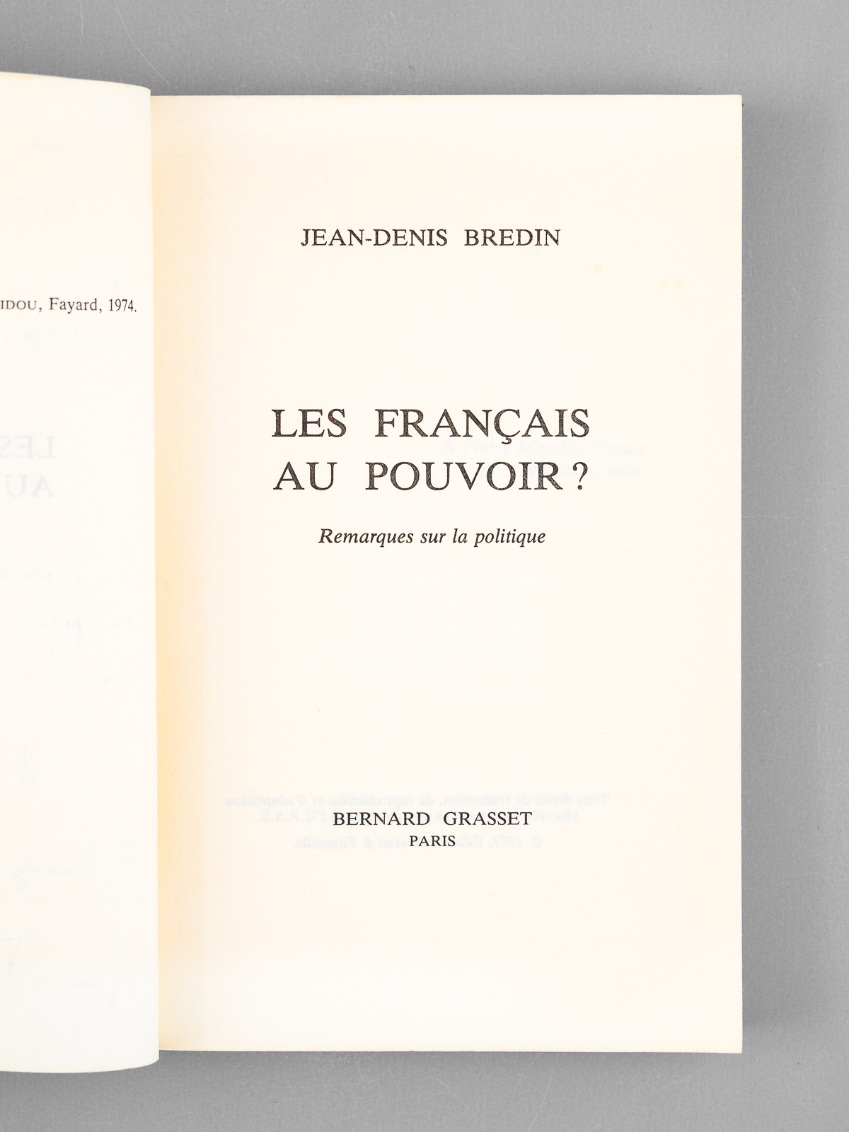 1 vol. in-8 br., Grasset, Paris, 1977, 234 pp.