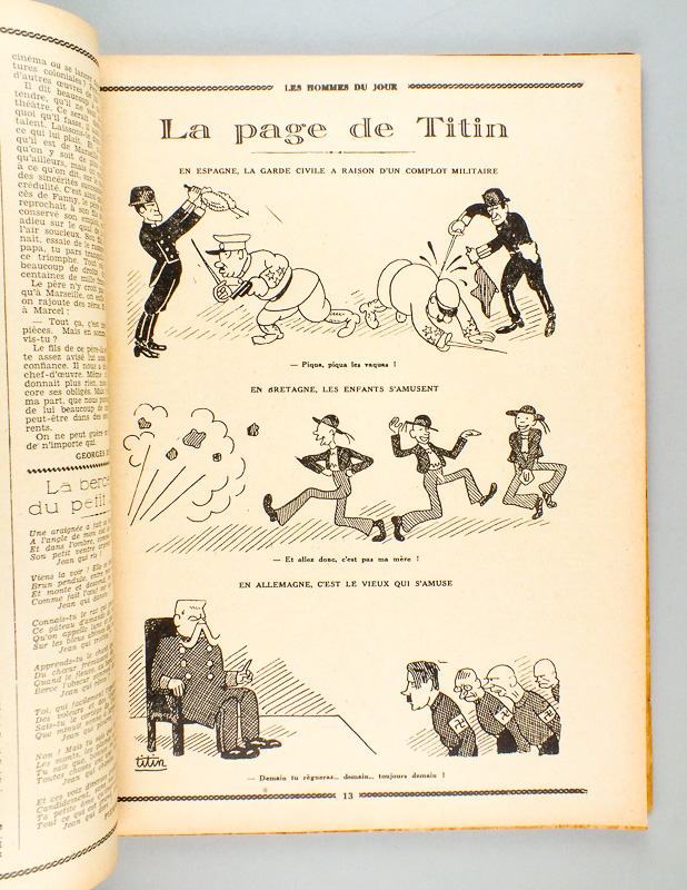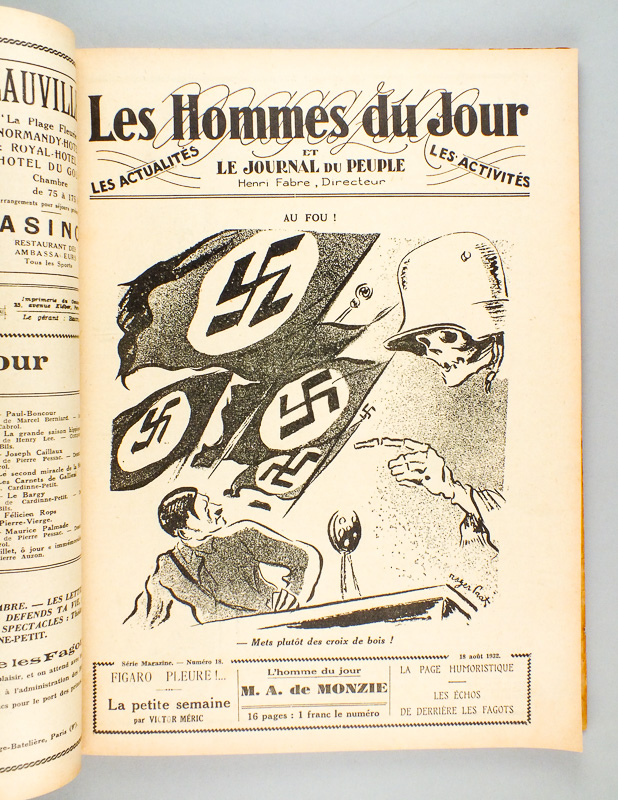1 vol. in-4 br., Les Hommes du Jour et Le Journal du Peuple. Première Série (1932) : Palmade - Ferdinand Brunot - Von Papen - Lucienne Boyer - A. de Monzie - Marcel Pagnol - Jean Mistler - Louis Malvy - Abel Gardey - Germain Martin - Marie Dubas - P.B. Gheusi - Suzanne Valadon, 17 pp. par numéro Commentaire : Etat satisfaisant (couv. abîmée avec mq. en dos, bon état intérieur)