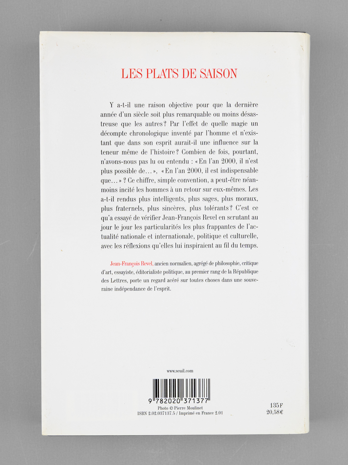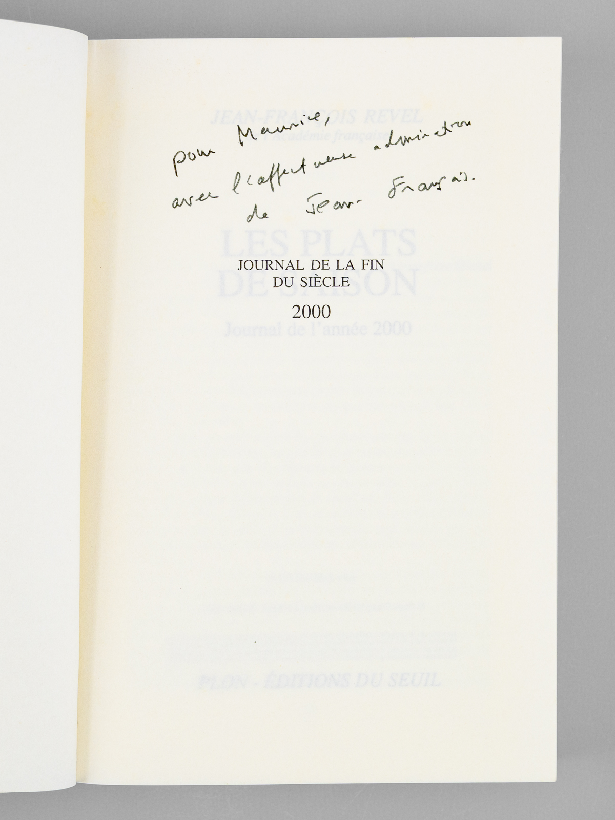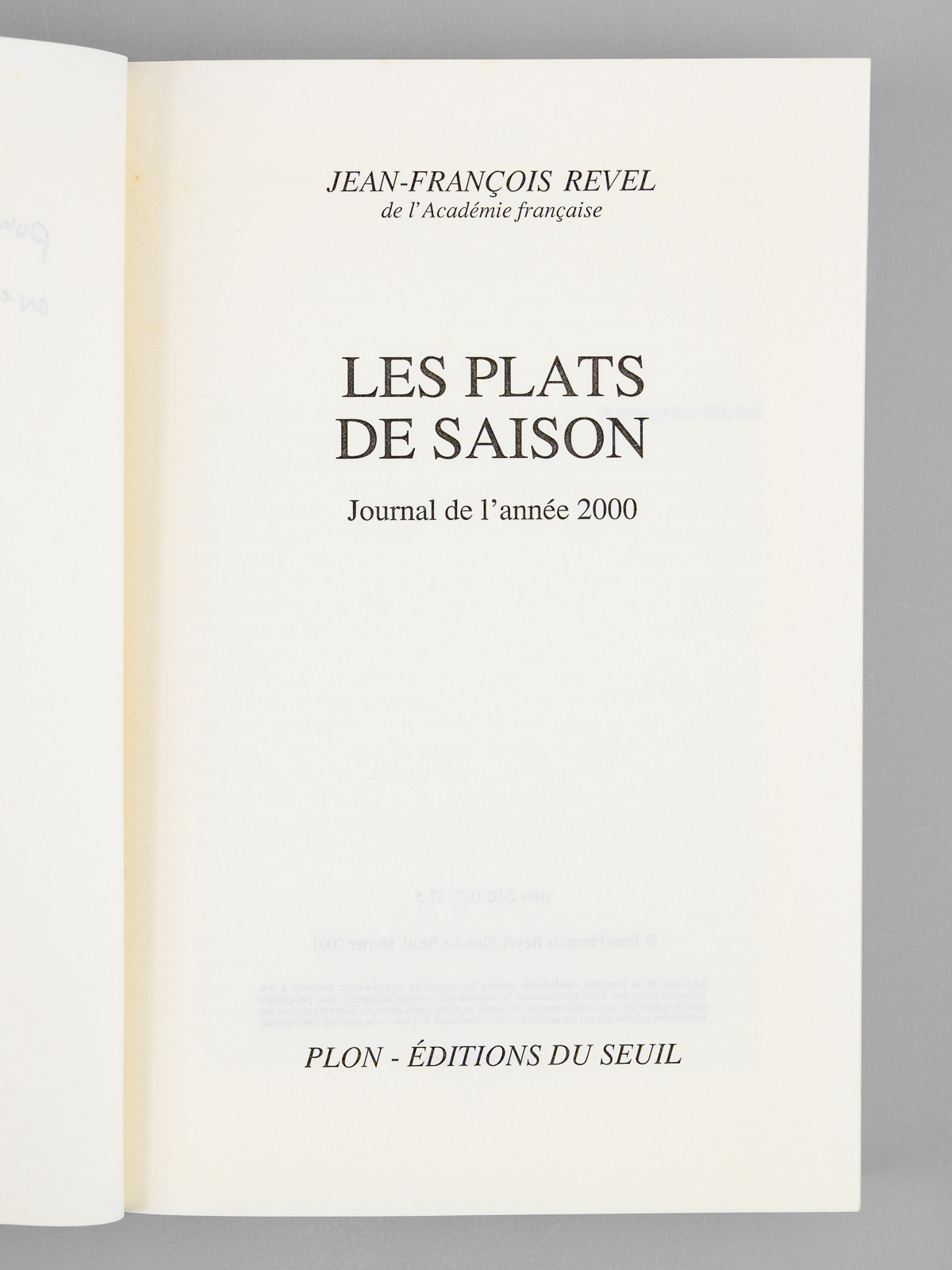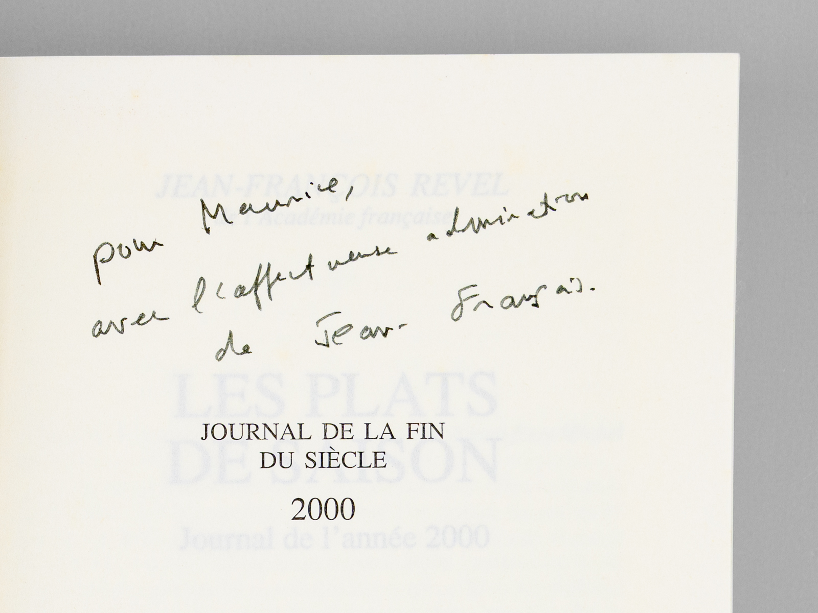 Les plats de saison , journal de l'année 2000 [ Livre signé par l'auteur - Envoi à Maurice Druon ] - Auteur: REVEL, Jean-François (1924-2006) - Année d'édition: 2001