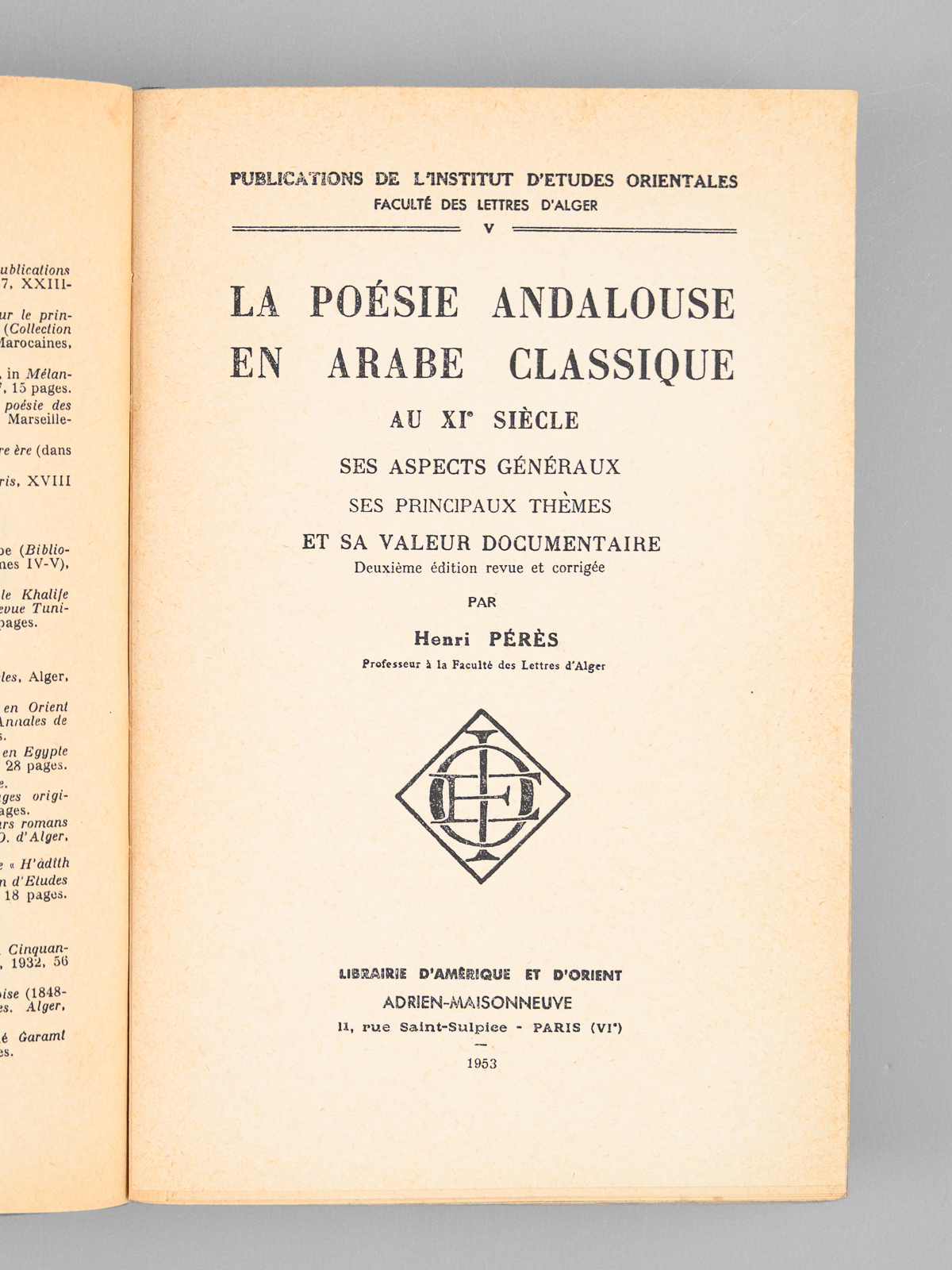 Deuxième édition revue et corrigée, 1 vol. in-8 br., Publications de l'Institut d'Etudes Orientales, Faculté des Lettres d'Alger, Librairie d'Amérique et d'Orient, Adrien-Maisonneuve, Paris, 1953, 541 pp.