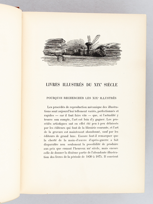 1 vol. fort et grand in-8 reliure bradel pleine toile rouge, couverture conservée, L. Carteret, Ancienne Librairie Conquet, Paris, novembre 1927, 712 pp. et 1 f. Commentaire : Très intéressant exemplaire de travail, dans une reliure solide, du troisième tome consacré aux 'Livres Illustrés du XIXe siècle'. Un classique indispensable, agrémenté de nombreuses couvertures originales en réduction, reproduites en couleur. Etat très satisfaisant (qq. annotations au stylo en marge et dans le texte sur qq. feuillets, reliure frotté, très bon exemplaire de travail par ailleurs).