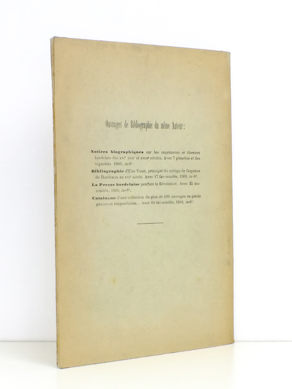 1 vol. i-8 br., Mounastre-Picamilh Libraire-éditeur, Bordeaux, 1916, 30 pp.