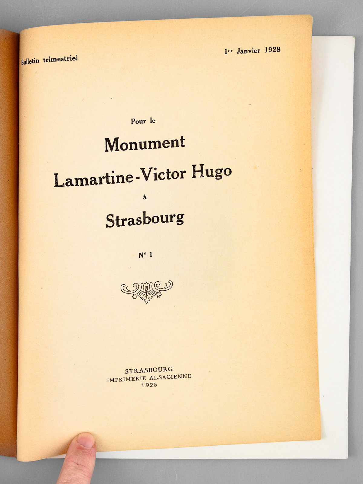 Pour le Monument Lamartine - Victor Hugo à Strasbourg. Bulletin Trimestriel. 1er Janvier 1928