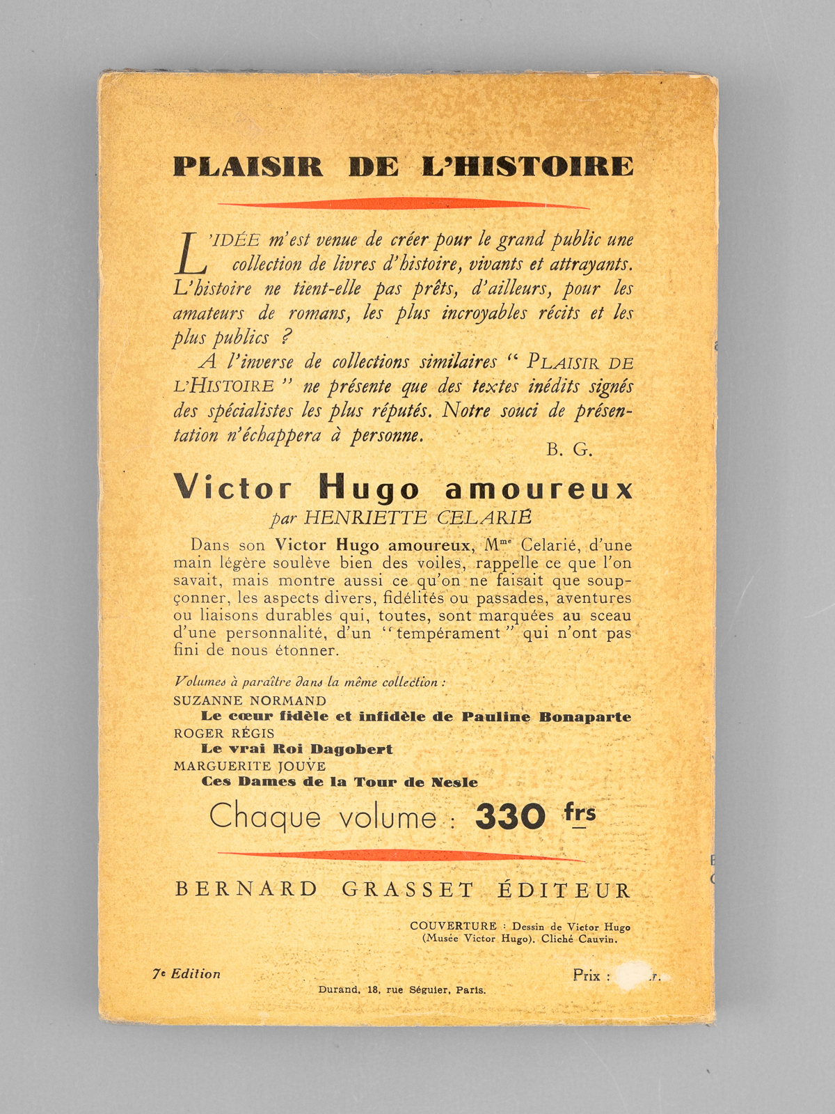 1 vol. petit in-8 br., coll. Plaisir de l'Histoire, Grasset, Paris, 1952