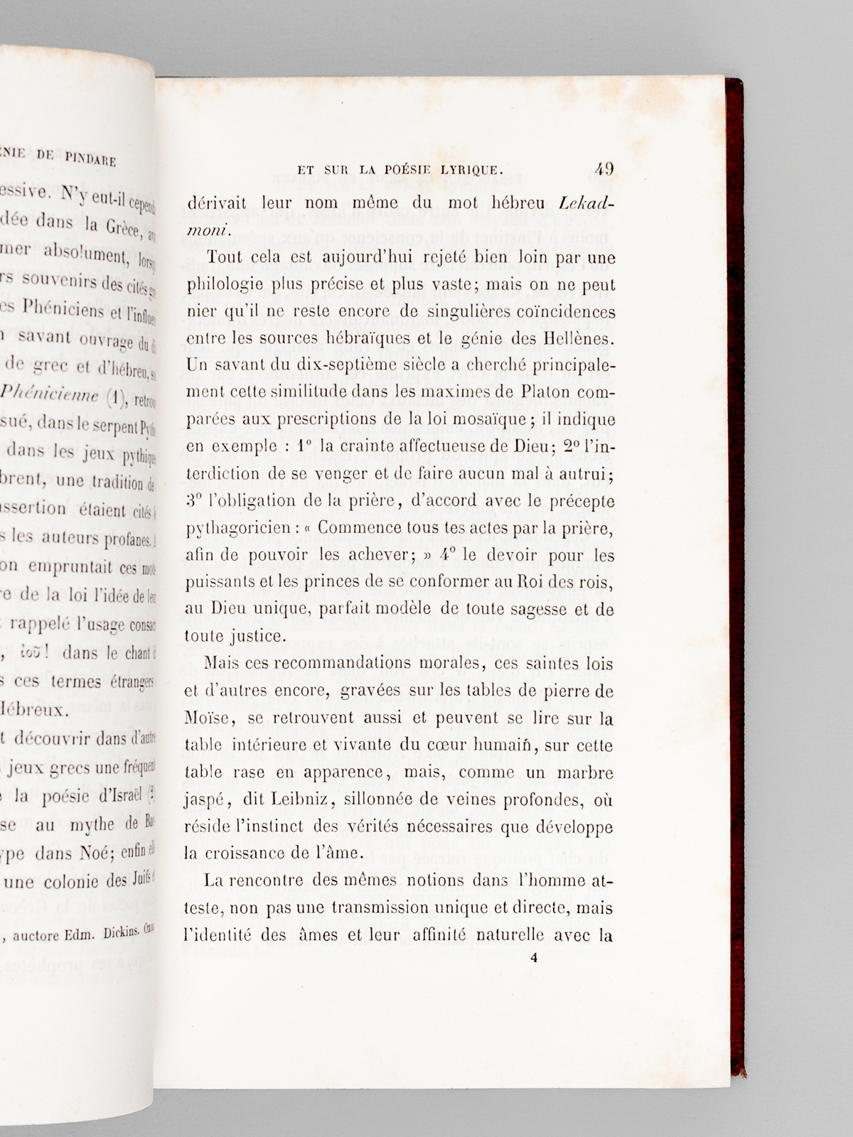 Essais sur le Génie de Pindare et sur la Poésie lyrique dans ses rapports avec l'élévation morale et religieuse des peuples [ Edition originale ]