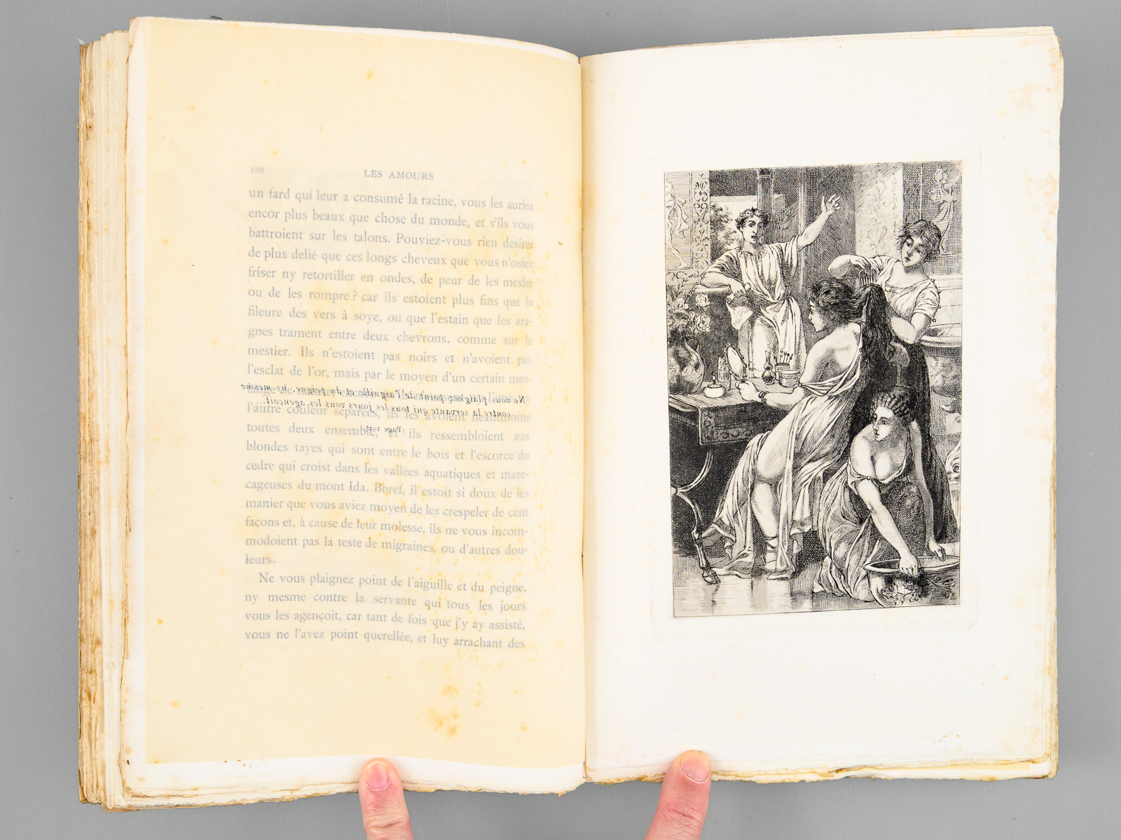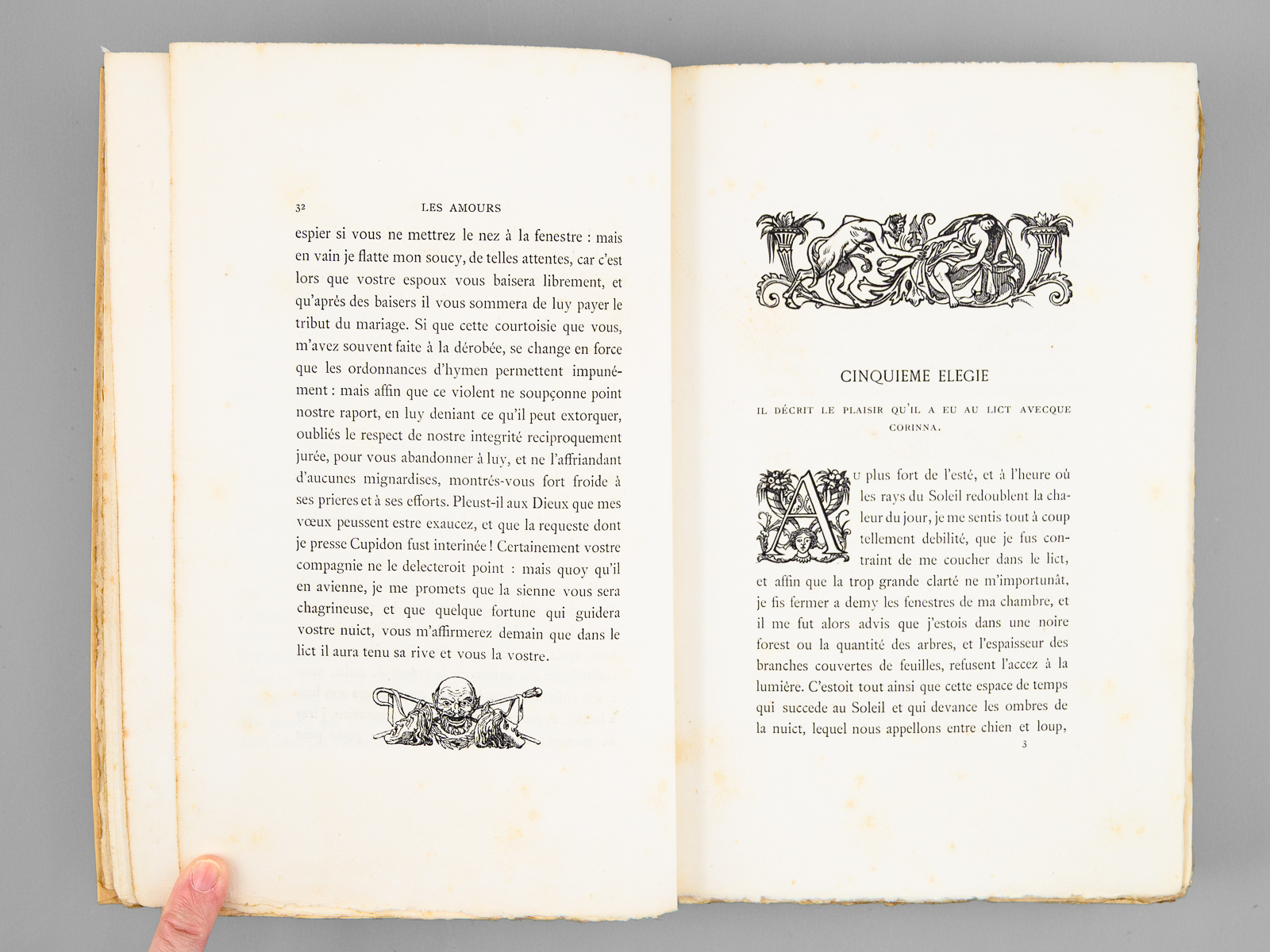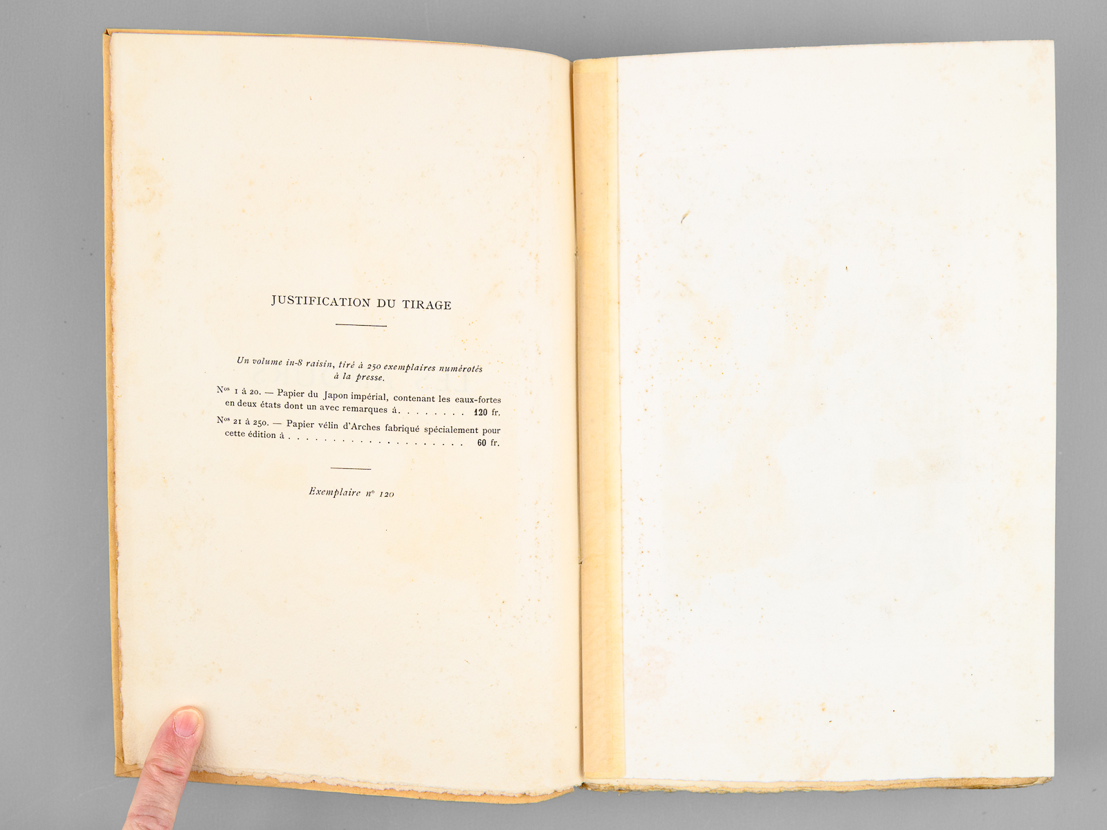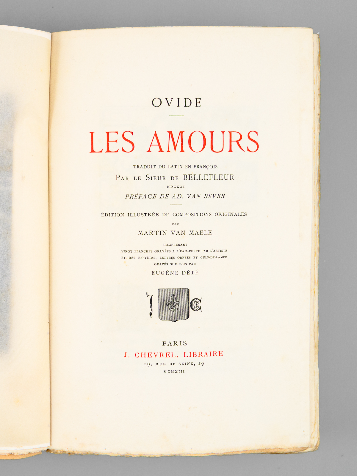 Edition illustrée de compositions originales de Martin Van Maele, Un des 230 exemplaires numérotés de 21 à 250 (n°120) sur Papier vélin d'Arches fabriqué spécialement pour cette édition (après 20 Japon), Traduit du latin en françois par le Sieur de Bellefleur, préface de Ad. Van Bever, Edition illustrée de compositions originales de Martin Van Maele, comprenant vingt planches gravées à l'eau-forte par l'artiste, et des en-têtes, lettres ornées et culs-de-lampe gravés sur bois par Eugène Dété, 1 vol. grand in-8 br. sous couv. rempliée, J. Chevrel, Paris, 1913, VIII-344 pp., 2 ff. n. ch. et 1 f. blanc avec 14 eaux-fortes hors texte sous serpenteX Commentaire : Edition illustrée de compositions originales de Martin Van Maele. Bon état (couv. très lég. frottée avec très petites taches en dos, très bon état par ailleurs).