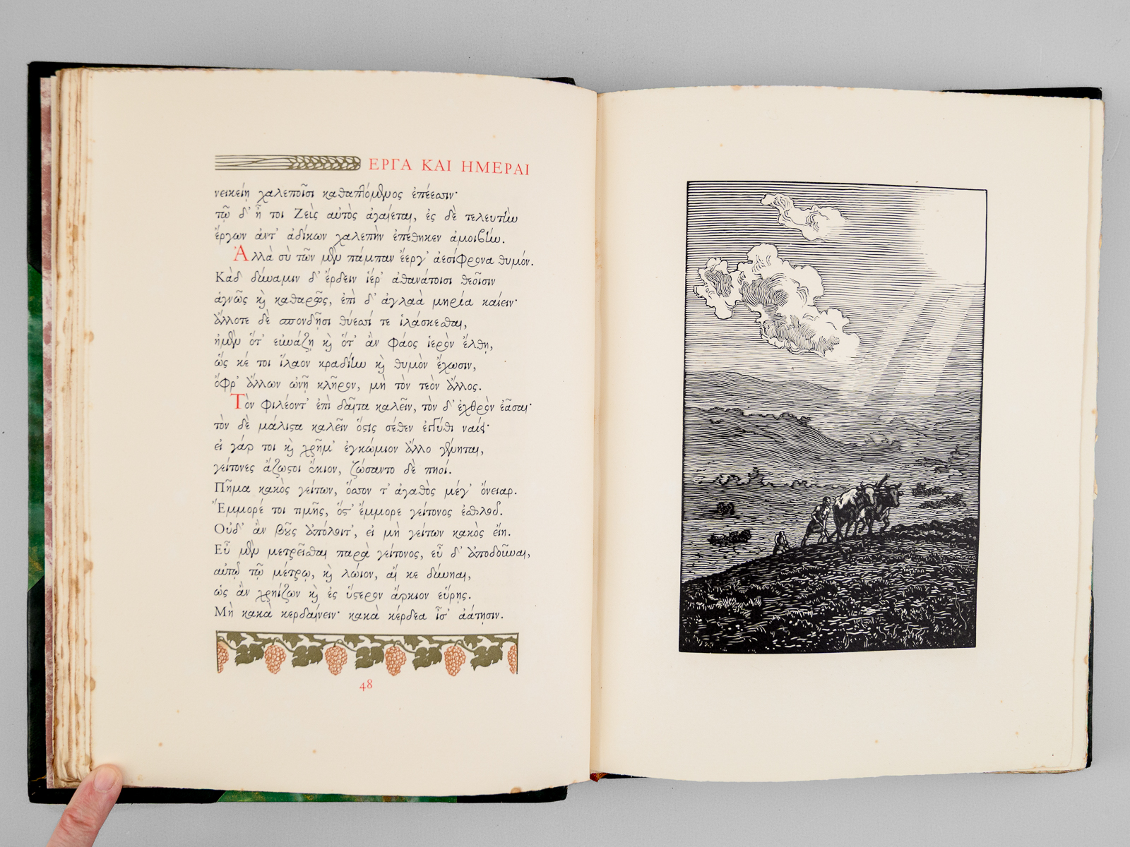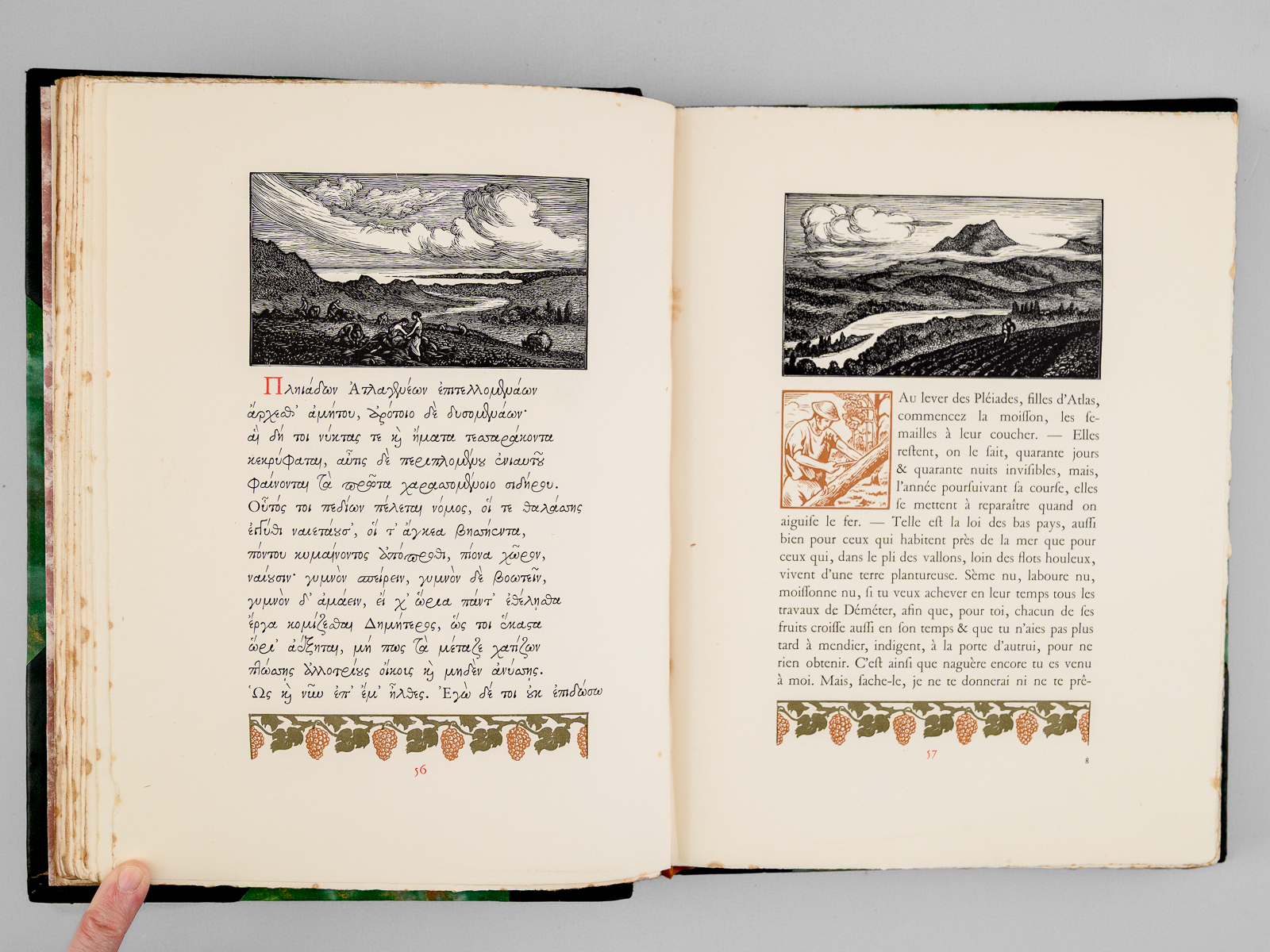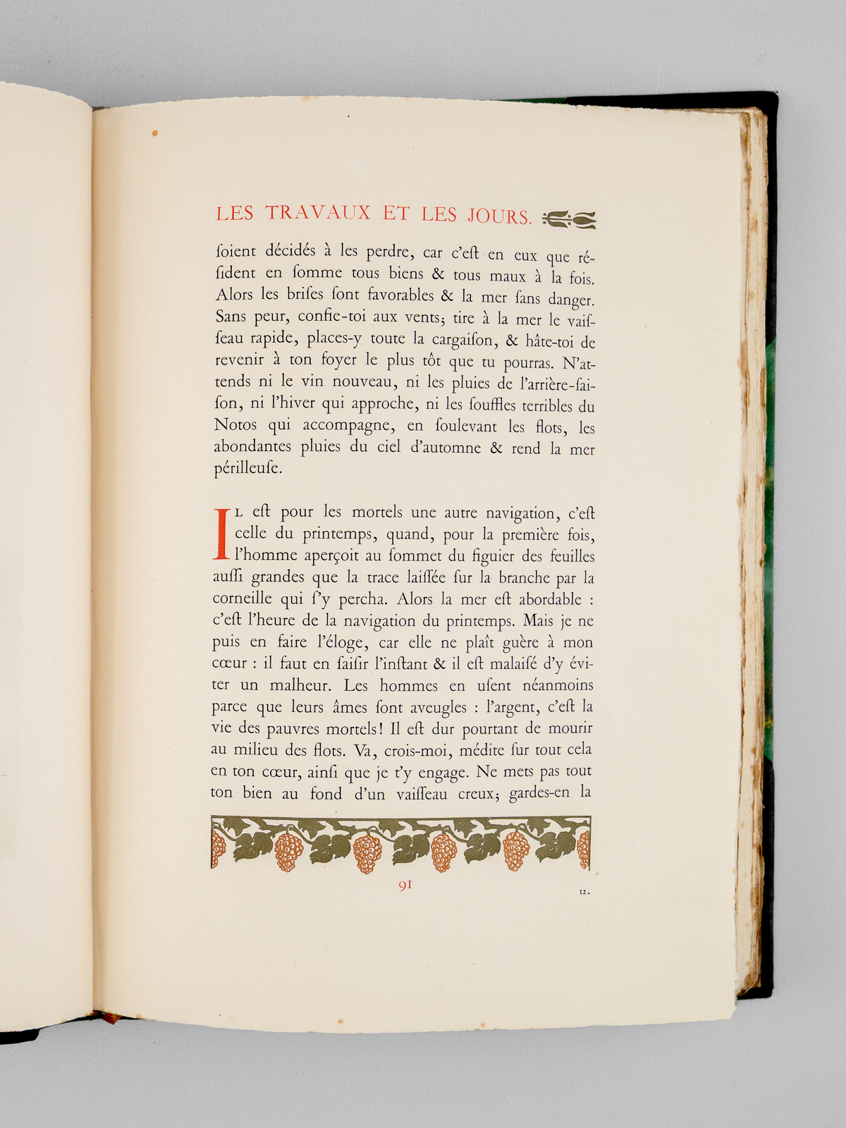 Décorés de cent quatorze bois originaux de Paul Émile Colin, un des 339 exemplaires sur vélin à la cuve des papeteries du Marais (de 37 à 375), 1 vol. in-4 reliure postérieure demi-basane à coins verte, dos à 4 nerfs, couvertures conservées, Éditions d'Art Édouard Pelletan, Paris, 1912, 212 pp., 8 ff. et 4 ff. n. ch. (prospectus) Commentaire : Bon état (qq. rouss., reste d'odeur de tabac, surtout dans les premiers et derniers ff.)