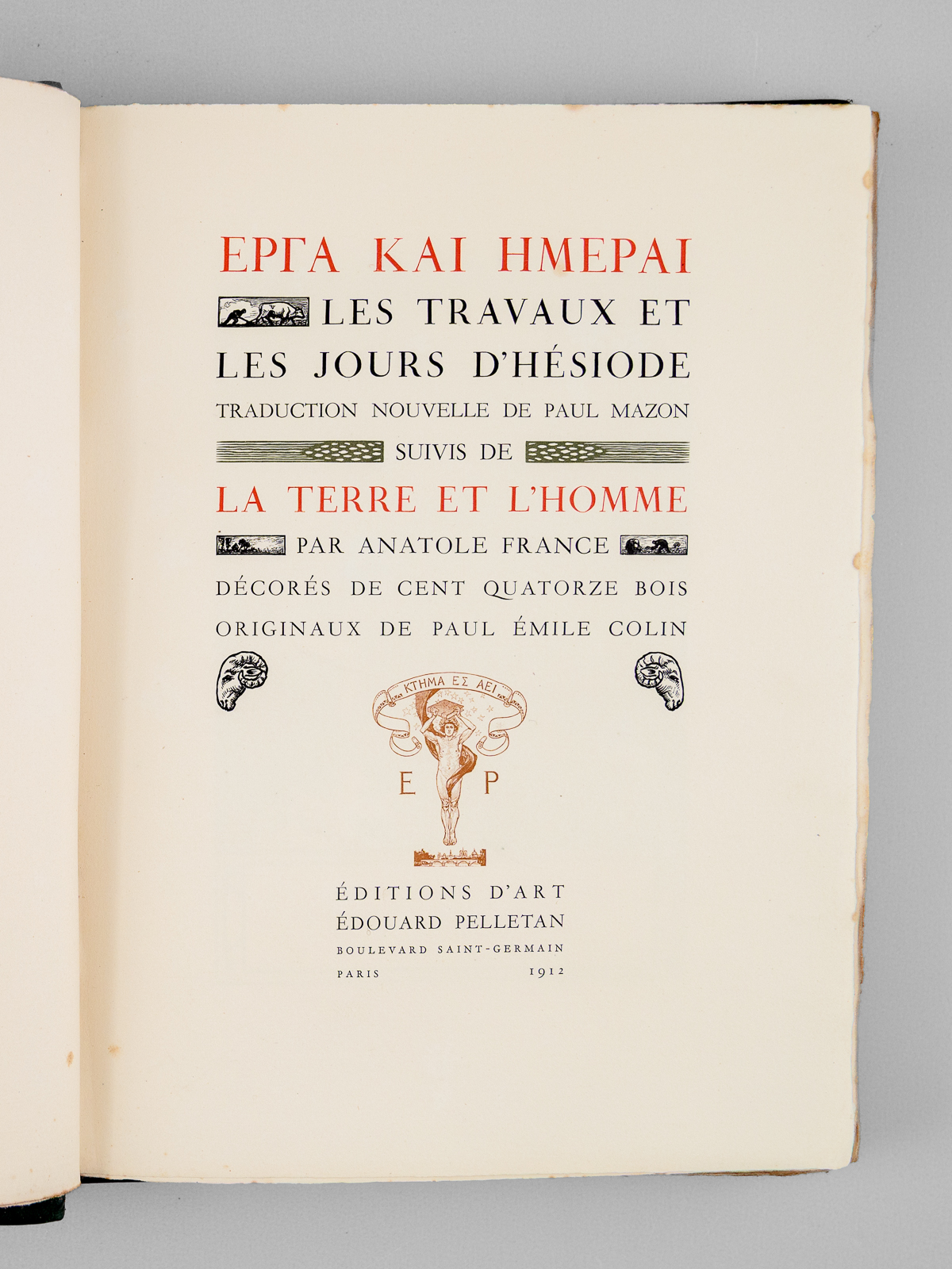Les Travaux et les Jours d'Hésiode. Traduction nouvelle de Paul Mazon suivie de La Terre et l'Homme par Anatole France. - Auteur: HESIODE ; COLIN, Paul Emile ; FRANCE, Anatole ; MAZON, Paul - Année d'édition: 1912