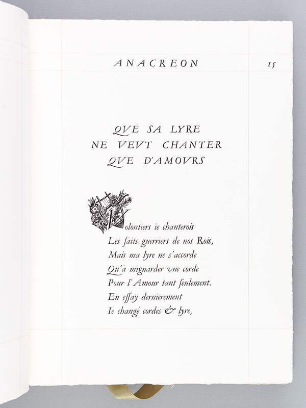 Odes d'Anacréon. Traduites en Français par Remy Belleau & Illustrées par Albert Decaris [ Avec un lavis original signé par Decaris ] - Auteur: ANACREON ; DECARIS, Albert ; BELLEAU, Rémy - Année d'édition: 1950