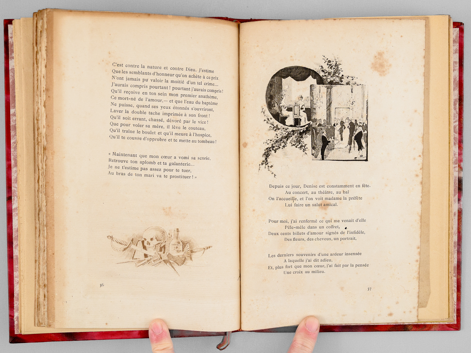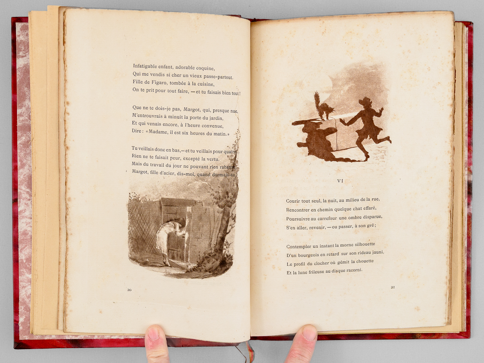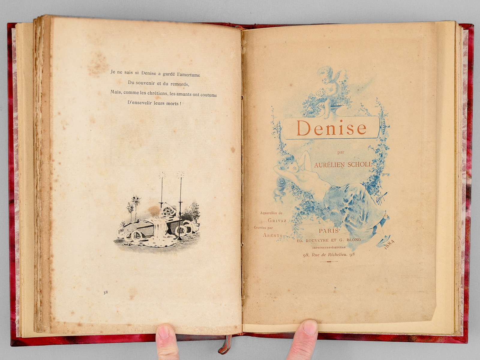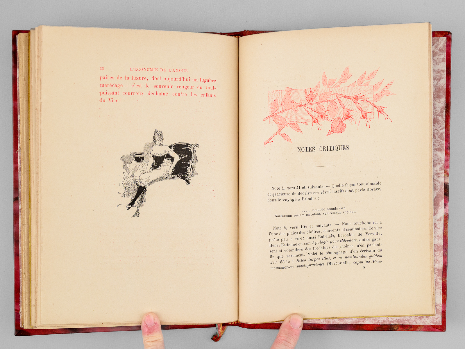 Aquarelles de Grivaz, gravées par Arents et Traduction par un bibliophile fantaisiste, Illustrations de F. Fau, 1 vol. in-8 reliure postérieure demi-basane rouge, ; Ed. Rouveyre et G. Blond, Paris, 1884 et Librairie des Économistes en Amour, Paris, 1884 et 1886
