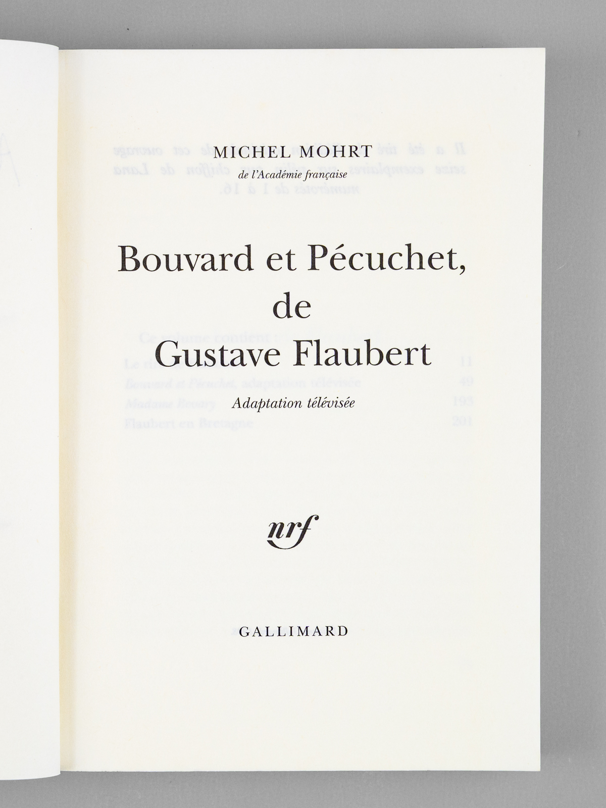 Envoi ms. de l'auteur, 1 vol. in-8 br., Gallimard, Paris, 1998, 206 pp. Commentaire : L'ouvrage, dédicacé à Maurice Druon, présente le texte de l'adaptation établie pour l'ORTF par Michel Mohrt du célèbre roman de Flaubert. Romancier, écrivain et historien de la littérature, Michel Mohrt (1914-2011) fut élu en 1985 membre de l'Académie française au Fauteuil 33, le fauteuil de Voltaire, où il succède à Marcel Brion. Bon état (qq. rouss. sur tranche en tête).