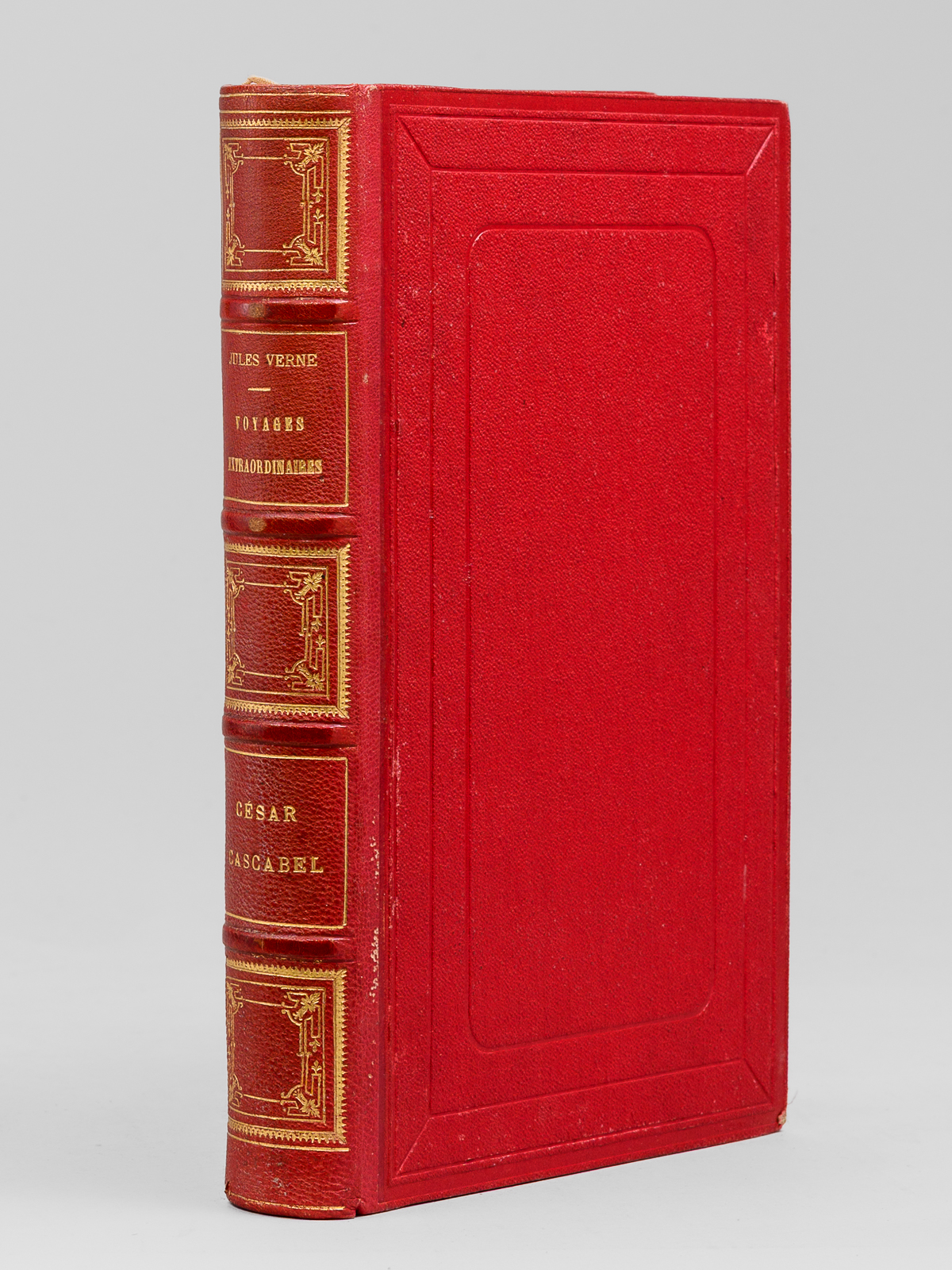 Commentaire : Exemplaire en reliure du type 'aux fers de lance' signée Wendling, en bon état (très petits frott. en plats, un coin frotté, petit frott. sur deux nerfs, rares rouss., très bon état par ailleurs). D'après la remarquable Gazette n° 8 de la Librairie Monte Cristo, cette production 'Wendling' débutant sans doute vers 1900-1902 fut réalisée 'à destination d'un marché encore inconnu de nous' et serait en réalité légèrement différente de la version classique 'aux fers de lance' : les reliures Wendling font 27,5 cm de haut (contre 28,2 pour les Hetzel) et les caractères utilisés pour les fers sont différents (cf. : Librairie Monte Cristo, Gazette n°8, pp. 19-20)