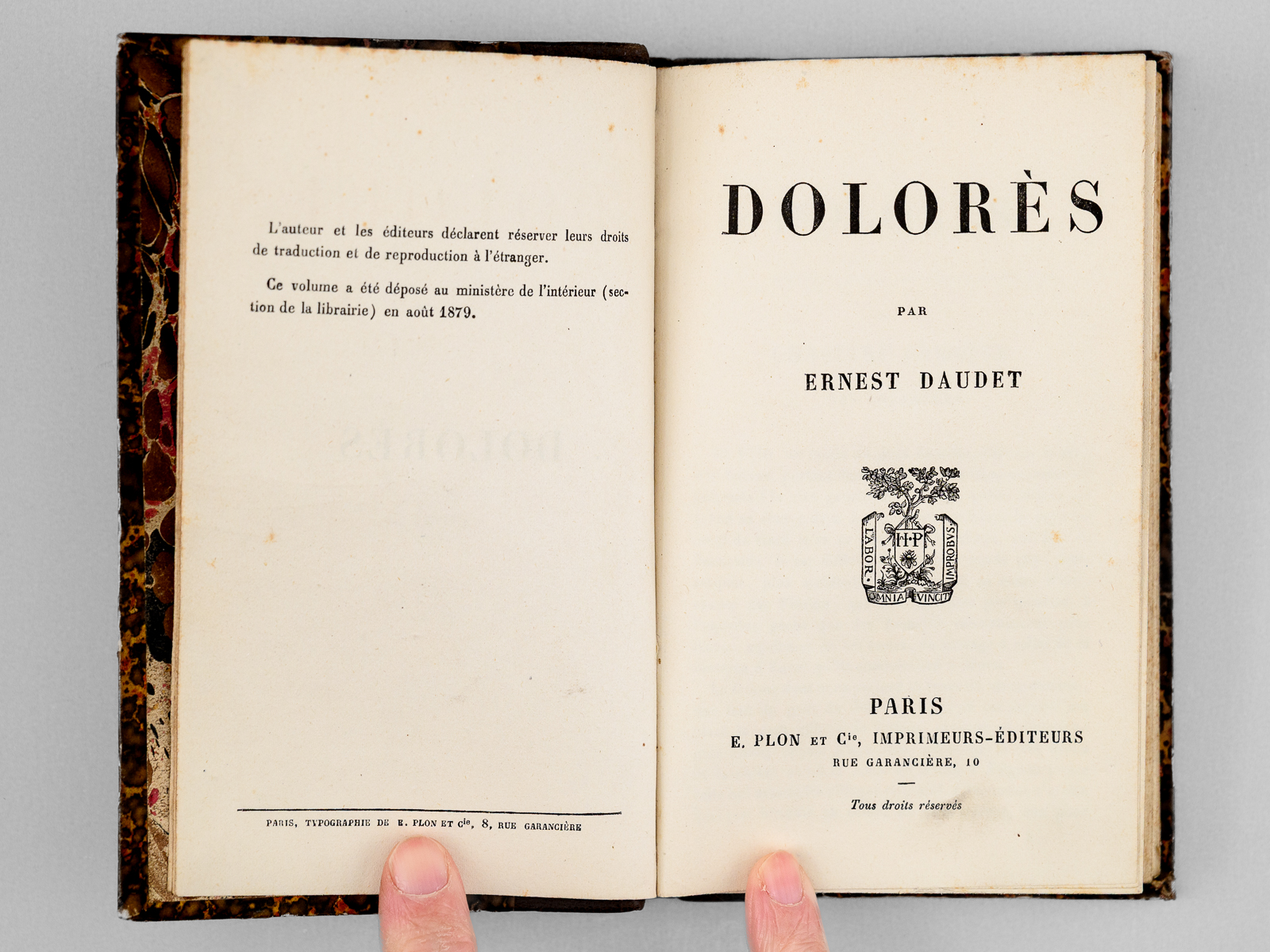 1 vol. in-16 reliure de l'époque demi-chagrin brun, dos à 5 nerfs orné, E. Plon et Cie, Paris, s.d. [ 1879 ], 274 pp. et 1 f. Commentaire : Bon état (dos très lég. frotté). Frère aîné d'Alphonse Daudet, Ernest Daudet (1837-1921) publia une trentaine de romans.