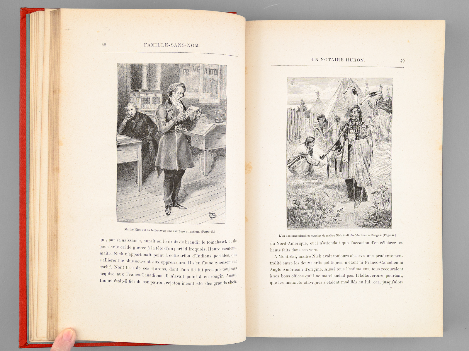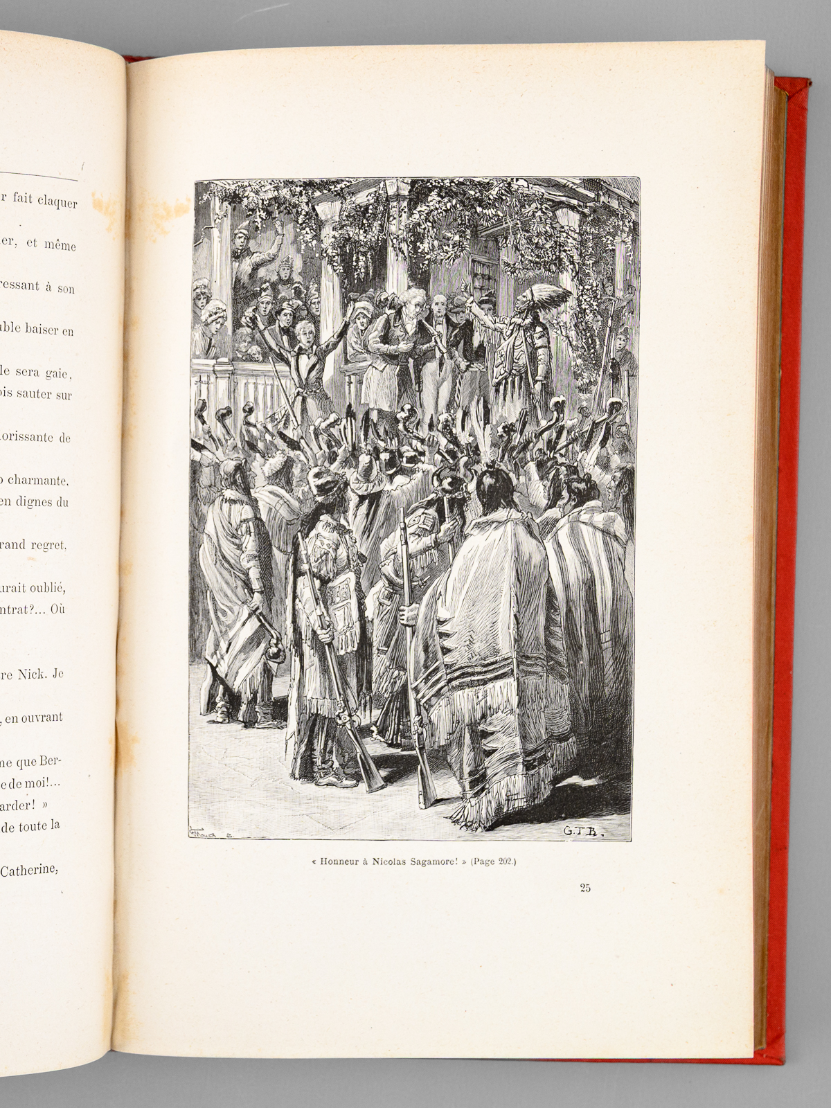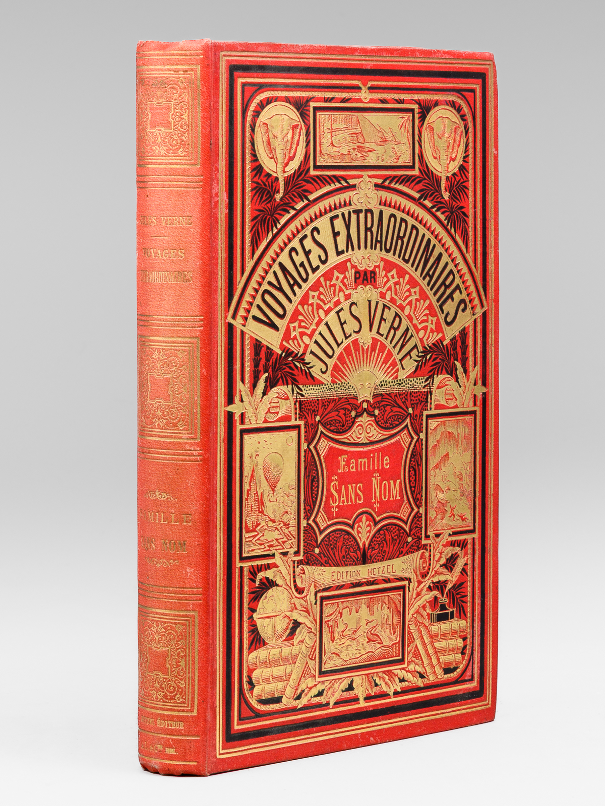 82 Dessins de G. Tiret-Bognet, et une carte en couleurs, 1 vol. grand in-8 cartonnage éditeur pleine percaline rouge aux deux éléphants, titre dans le cartouche, toutes tranches dorées, cartonnage signé A. Lenègre et Cie du 3ème type ((mention Hetzel sous le cartouche, médaillon circulaire à motifs noirs au plat inférieur), Bibliothèque d'Education et de Récréation, J. Hetzel et Cie, Paris, s.d. [1889 ], 2 ff., 422 pp., 1 f. blanc et 4 ff. (catalogue EX) Commentaire : Bon exemplaire de type 275-c selon Jauzac, avec le premier plat corrigé par l'apposition d'une étiquette dans le cartouche, à la gouttière 'lingot' (dos très lég. passé, très bel état par ailleurs). Jauzac, 255