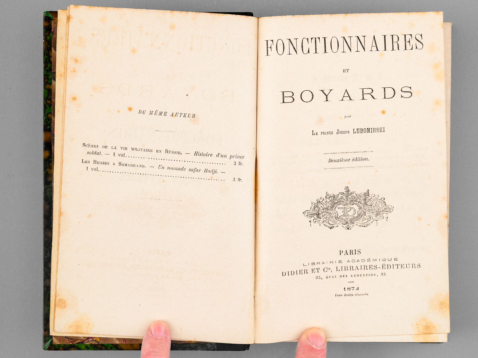 Commentaire : Bon état pour ce roman dont l'action se situe dans la Russie tsariste. L'auteur, le prince Joseph Maximilien Wladislas Marien Lubomirski était d'origine polonaise. Installé en France, et marié à une française, il est l'auteur de divers ouvrages romanesques et historiques. Il est enterré au Cimetière du Père Lachaise (Paris).
