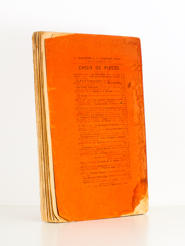 1 vol. in-8 br., G. Charpentier et Fasquelle éditeurs, Paris, 1893, (1894 sur couv.), 172 pp. Commentaire : Etat moyen (ouvrage débroché, couv. avec mques et anciennes mouill., mais très bon état interieur) pour cet exemplaire qui mériterait une reliure, compte tenu de son bel état intérieur et de sa rareté. Prix en l'état.
