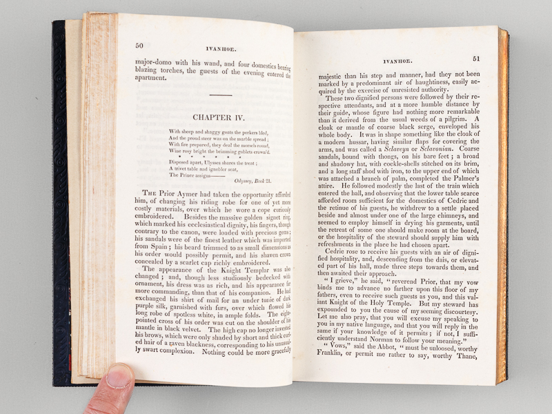 Parker's Edition, revised and corrected with a general preface, an introduction to each novel, and notes historical and illustrative bu the Author, 2 vol. in-12 reliure plein veau bleu, dos à 5 nerfs dorés orné, toutes tranches dorées, Waverley Novels, Volumes 15 & 16, Samuel H. Parker, Boston, 1834, XIV-263 ; 287 pp. Commentaire : Good copy (some foxing, ex-libris stamp on title page)