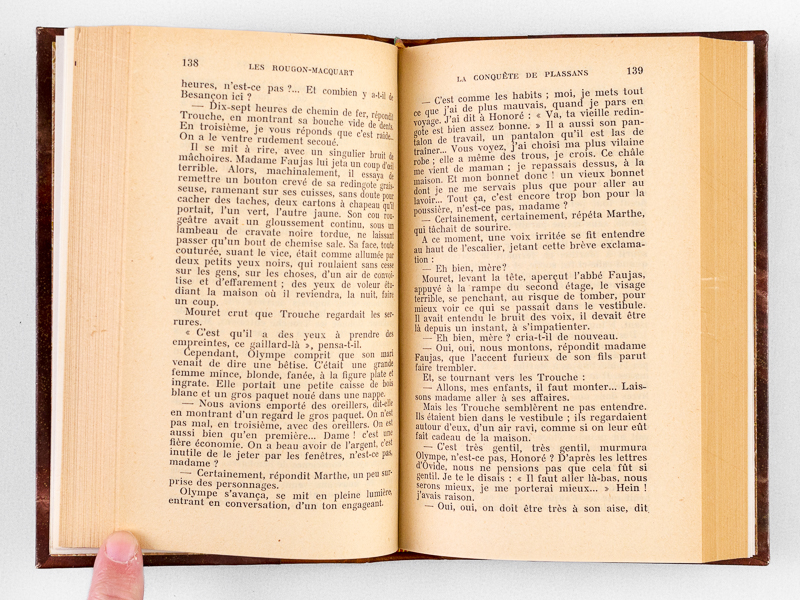 1 vol. in-12 reliure postérieure demi-basane marbrée, dos à 4 nerfs orné, Les Rougon-Macquart, Fasquelle, Paris, s.d. [ 1954 ], 391 pp. Commentaire : Bon exemplaire bien relié en très bon état