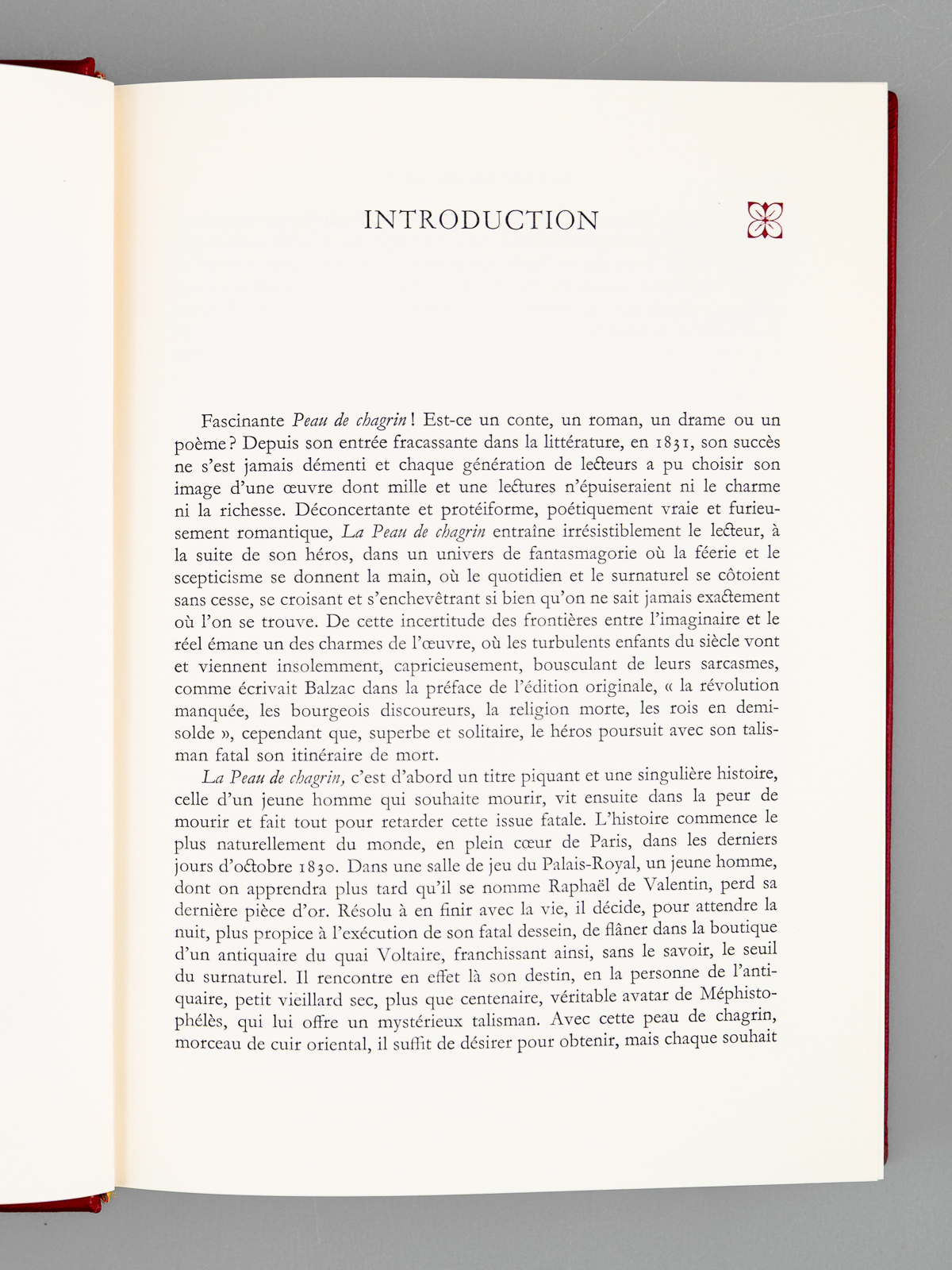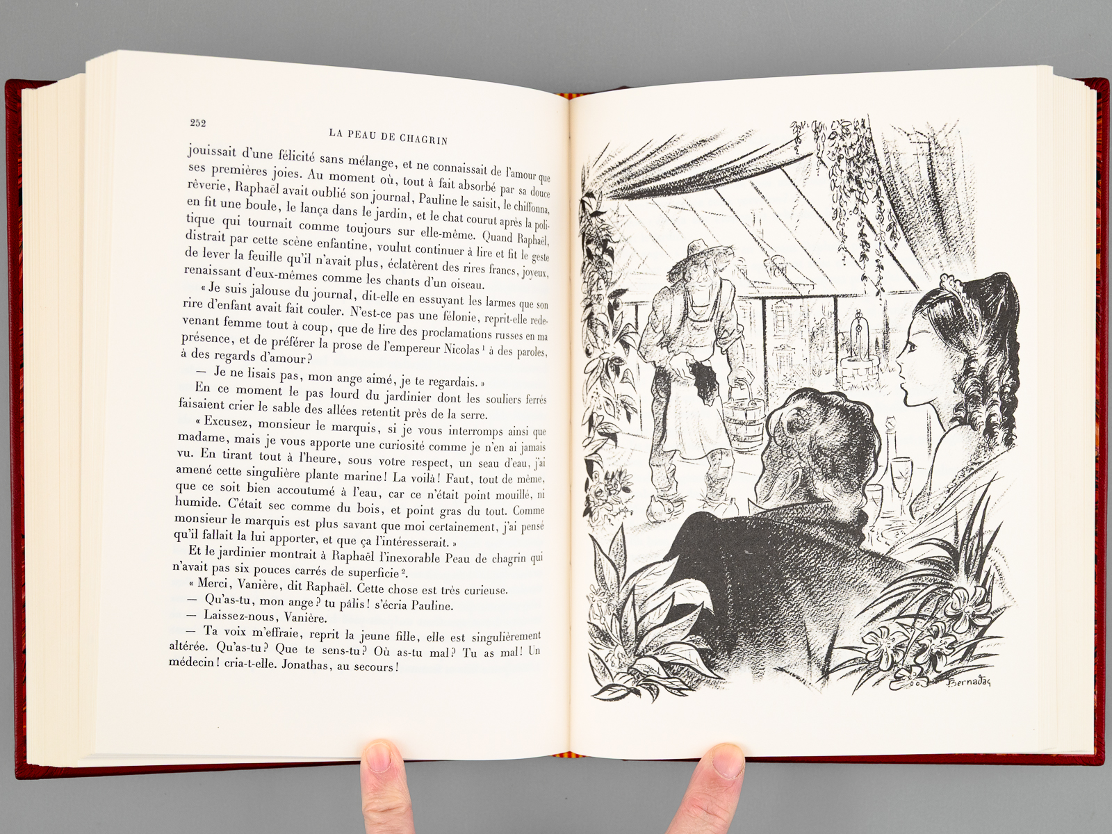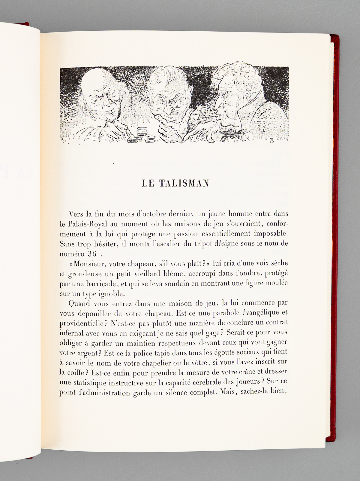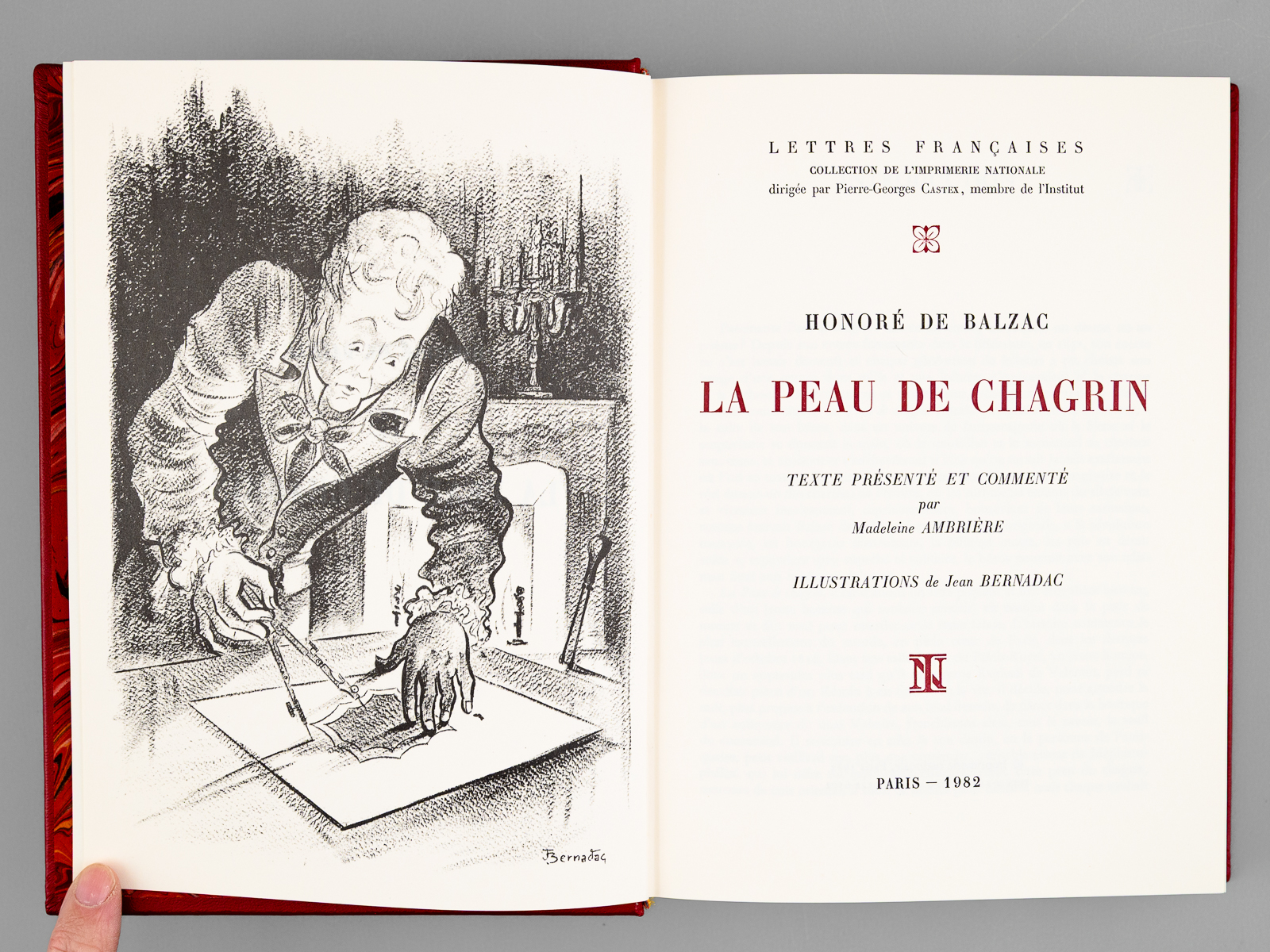Texte présenté et commenté par Madeleine Ambrière, illustrations de Jean Bernadac, un des 5000 exemplaires sur papier d'édition de Rives numéroté, 1 vol. in-8 reliure pleine cuir rouge éditeur, dos à 4 nerfs dorés, tête dorée, coll. Lettres Françaises, collection de l'Imprimerie Nationale, Paris, 1982, 422 pp. Commentaire : Bon exemplaire
