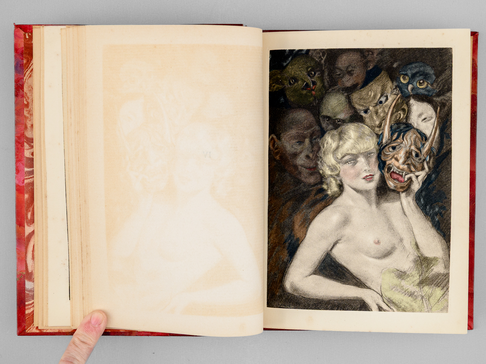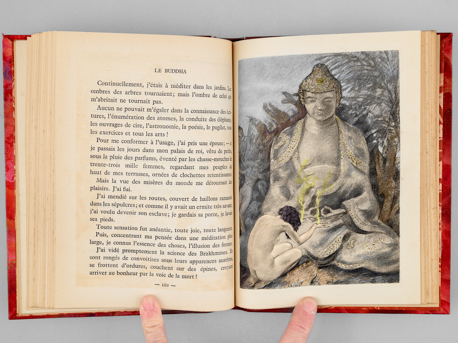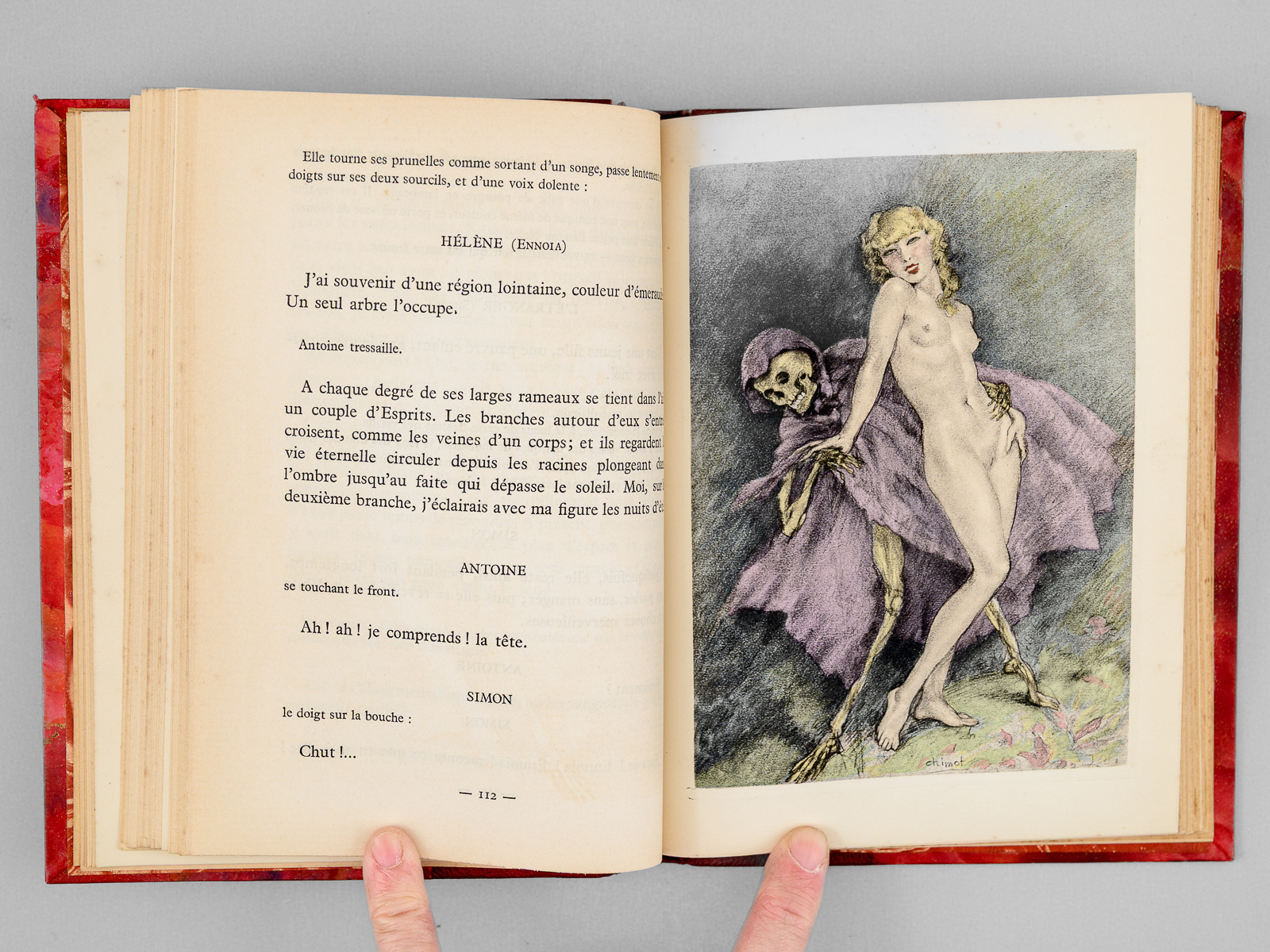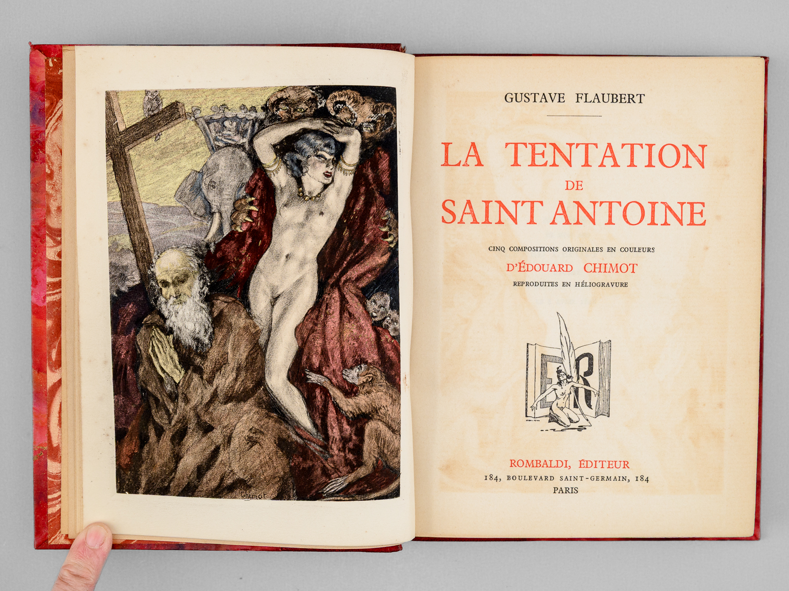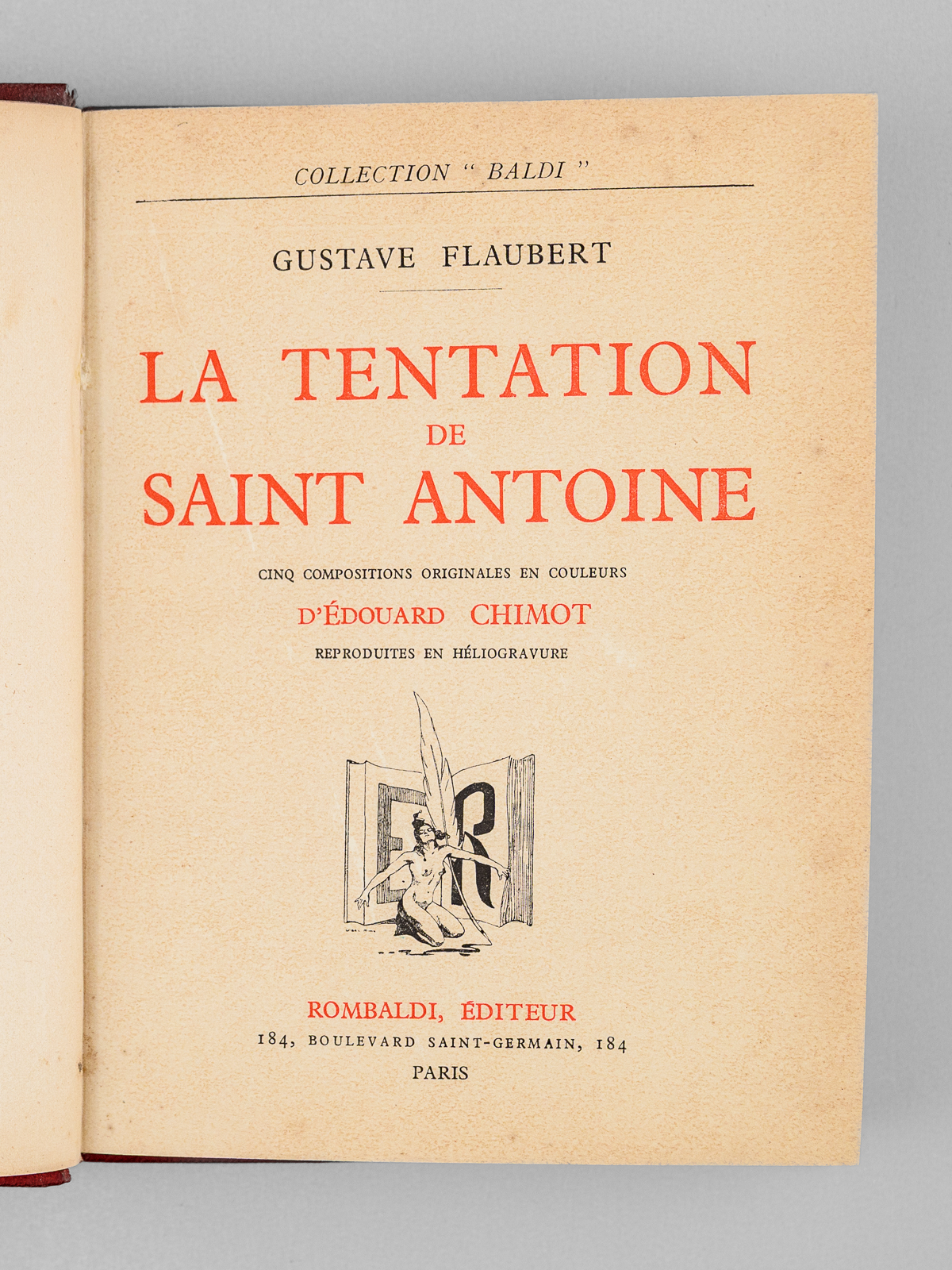Cinq compositions originales en couleurs d'Édouard Chimot reproduites en héliogravure, 1 vol. in-8 reliure demi-chagrin rouge, dos à 4 nerfs, tête dorée, collection 'Baldi', Rombaldi, Éditeur, Paris, 1935, 254 pp. Commentaire : Bon état (reliure très lég. frottée)
