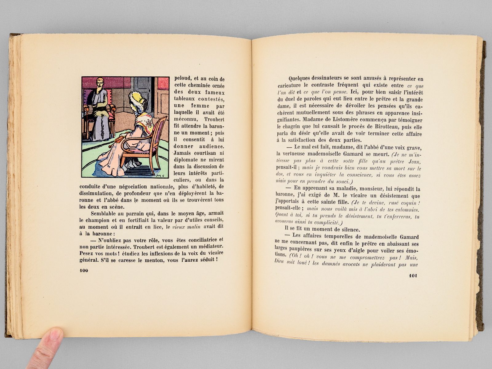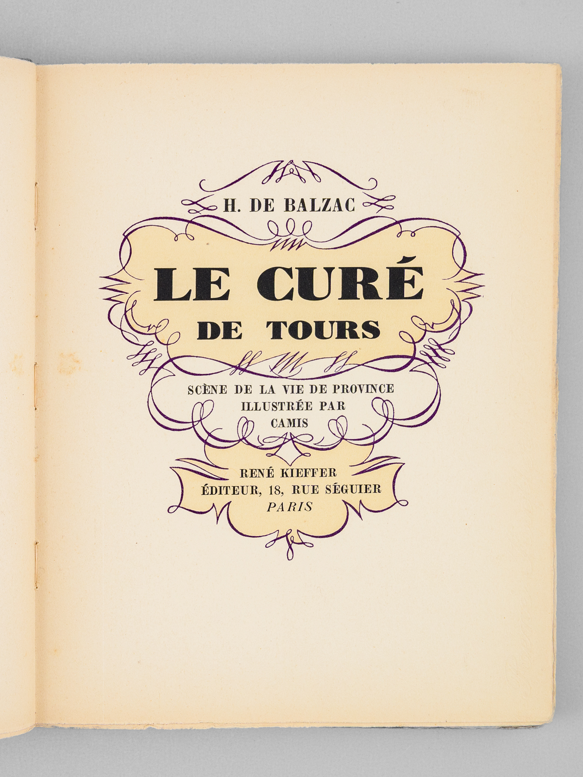 Scène de la vie de province illustrée par Camis, un des 500 exemplaires sur vélin blanc à la forme (n° 249), 1 vol. in-8 br. sous couv. rempliée, René Kieffer, Paris, , s.d., 112 pp., 3 ff., 112 pp. et 2 ff. n. ch. Commentaire : Les illustrations de Camis coloriées au pochoir sont superbes. Bon état.