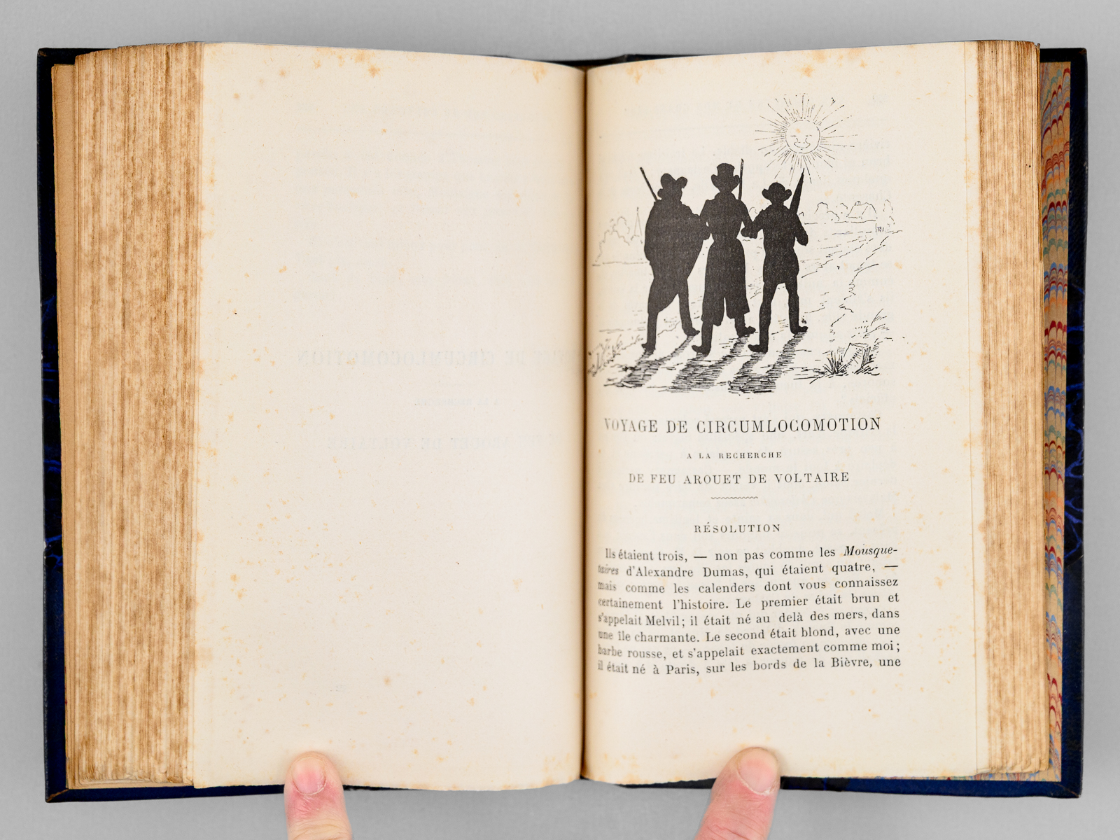 Illustrations de Maurice Marais, 1 vol. in-12 reliure de l'époque demi-chagrin maroquiné bleu, dos à 5 nerfs dorés richement orné à la grotesque, couvertures conservées, double filet doré en mors et coins, tête dorée, C. Marpon et E. Flammarion Éditeurs, Paris, s.d. [circa 1884 ], 373 pp. Commentaire : Jolie reliure du temps. Etat très satisfaisant (rouss. parfois fortes)