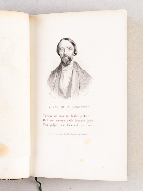 Commentaire : Belle provenance pour cet exemplaire du tirage illustré Eugène Meissonier : de la bibliothèque du grand bibliophile Jules Bobin, ami de Huysmans (avec son ex-libris manuscrit daté de 1862). Cette édition se termine (après la page 239 jusqu'à la page 304) sur le recueil de 'l'Opinion des Journaux sur les Contes Rémois' (comme Vicaire le signale dans l'exemplaire conservé à la réserve de la Bibliothèque Nationale, mais sans les 24 pp. supplémentaires). 'Cette illustration des Contes Rémois, admirablement gravée sur bois, restera comme une des plus belles productions romantiques' selon Carteret. Etat très satisfaisant (reliure lég. frottée, gardes noircies, qq. rouss., ex-libris gravé 'Bibliothèque de la Vicomté'). Carteret, III, 158 ; Vicaire, II, 387