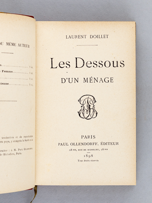 1 vol. in-12 relié demi-chagrin rouge, Paul Ollendorff, Paris, 1898, 2 ff., 288 pp.