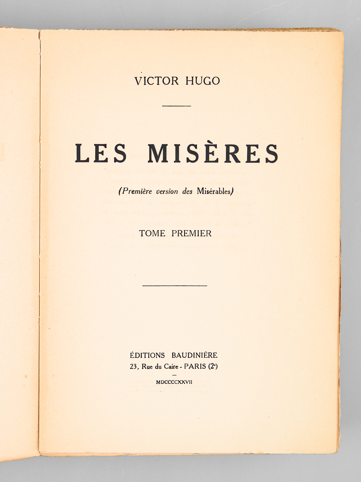 Les Misères. Première version des Misérables (2 Tomes - Complet)