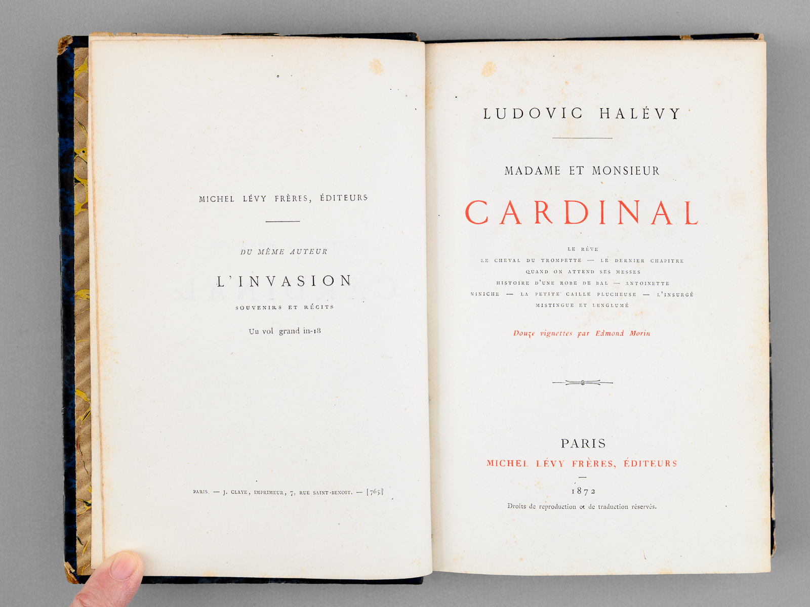 Madame et Monsieur Cardinal [ exemplaire dédicacé par l'auteur ] - Contient : Le Rêve, Le Cheval du Trompette, Le Dernier Chapitre, Quand on attend ses messes, Histoire d'une robe de bal, Antoinette, Niniche, La Petite Caille Plucheuse - Auteur: HALÉVY, Ludovic ; MORIN, Edmond (ill.) - Année d'édition: 1872