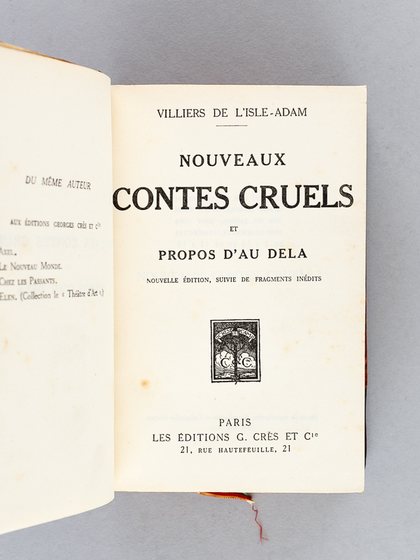 Nouveaux Contes Cruels et Propos d'Au-Delà [ Avec : ] Chez les Passants. Fantaisies, Pamphlets et Souvenirs suivi de Pages inédites [ Avec : ] Tribulat Bonhomet - Auteur: VILLIERS DE L'ISLE-ADAM, Auguste - Année d'édition: 1919