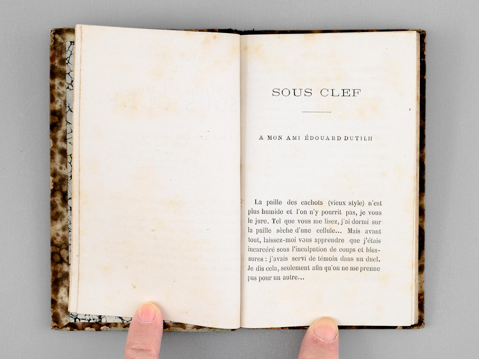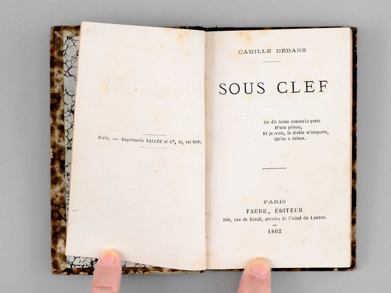 1 vol. in-16 reliure de l'époque demi-cuir brun, Faure, Paris, 1862, 121 pp. Commentaire : Edition originale peu commune de ce premier roman de l'écrivain né à Caudéran, Camille Debans (1832-1919). L'ouvrage, publié en revue en 1859, lui fut inspiré par son incarcération, en 1855, au Fort du Hâ, à Bordeaux, pendant 35 jours, pour avoir servi de témoin lors d'un duel mortel. Etat satisfaisant (usures en coiffes, plats un peu frottés).